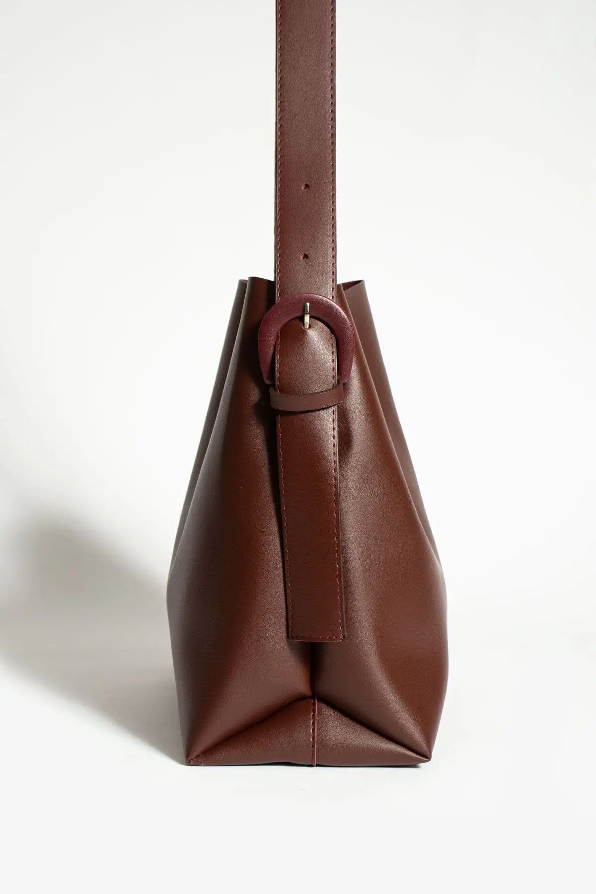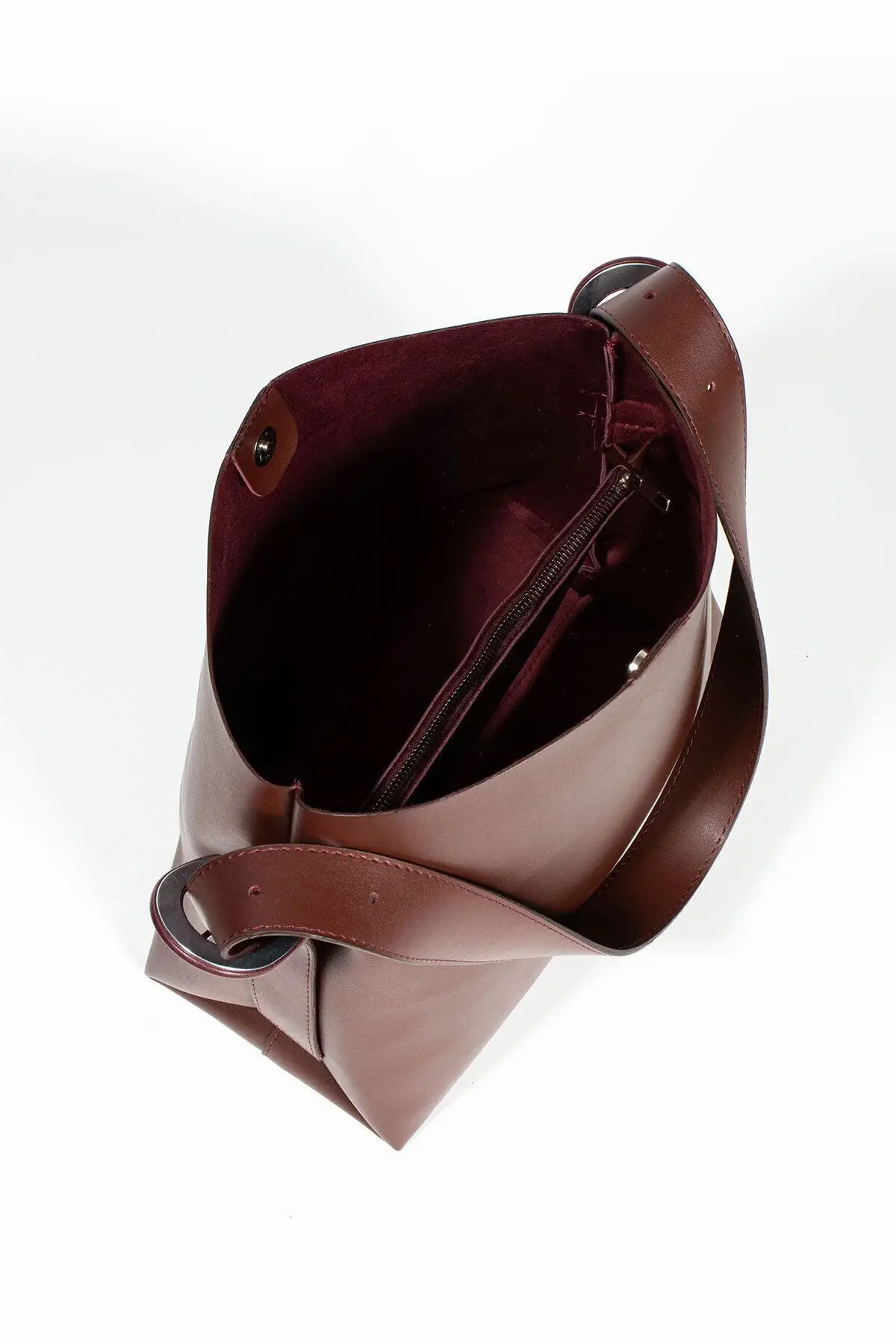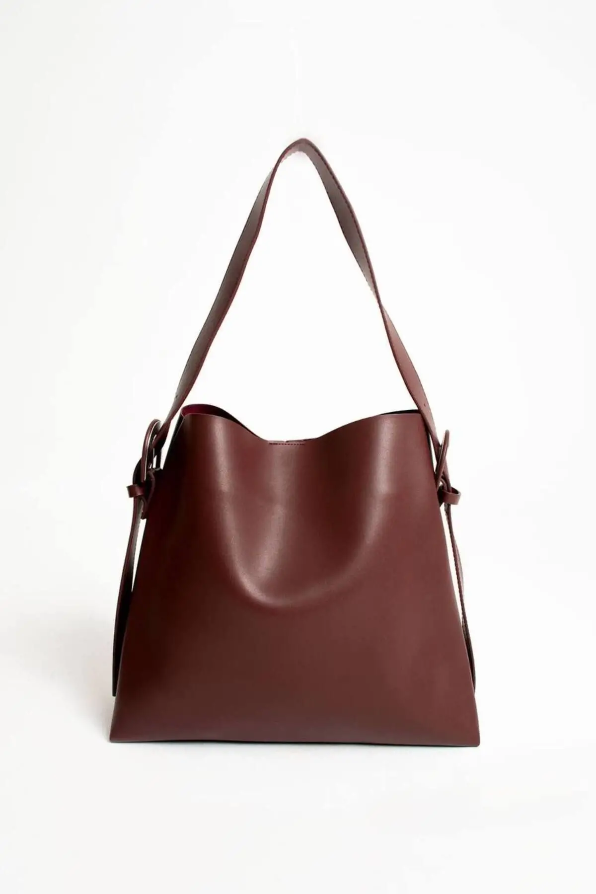 Nastroy Büyük Boy Kemer Detaylı Çıt Çıt Kapamalı Shopper Bordo Cilt Nastroy Trend Kadın Omuz Çantası