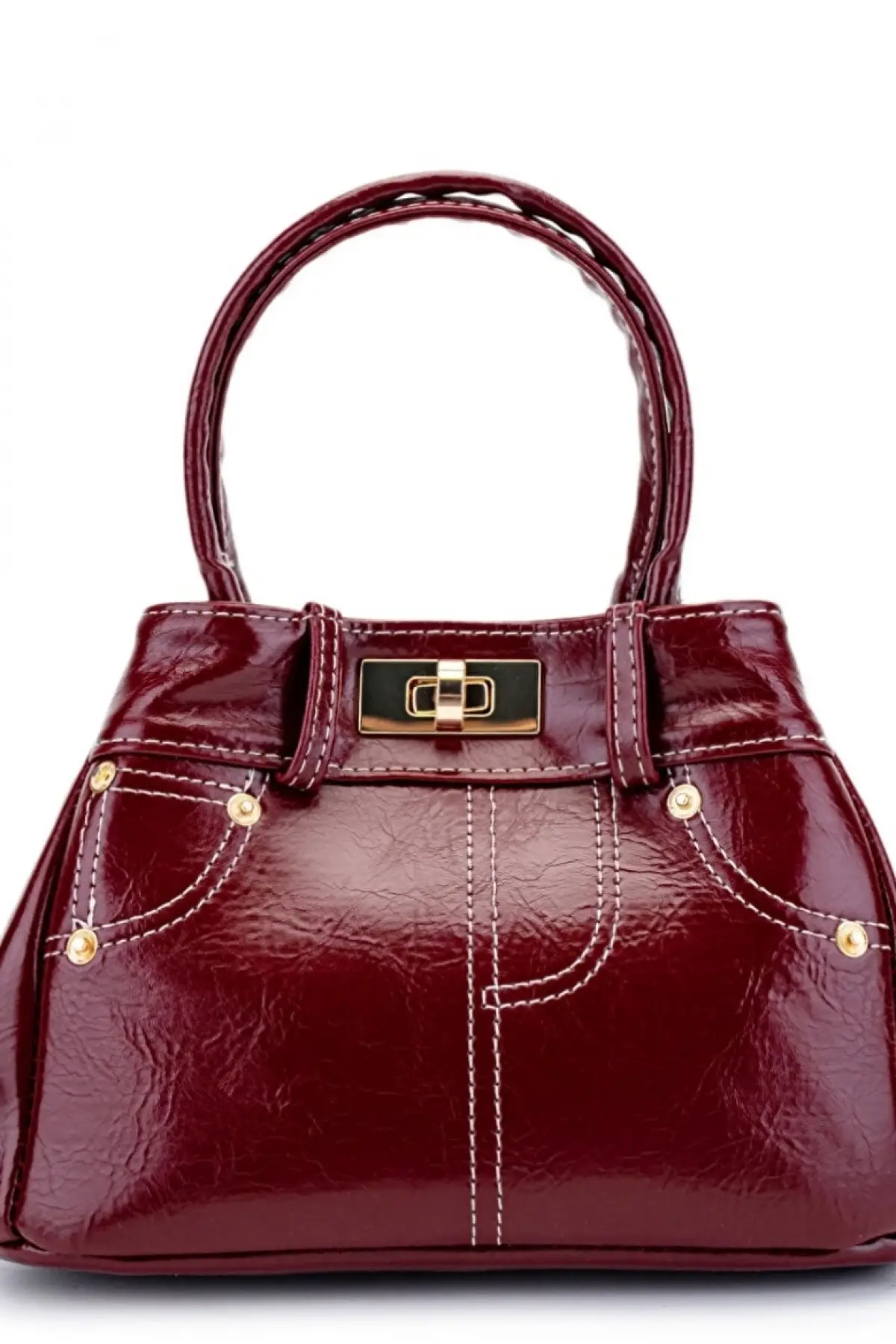 Melina Bordo Vegan deri üç bölmeli fermuar kapamalı Kadın el kol ve omuz çantası