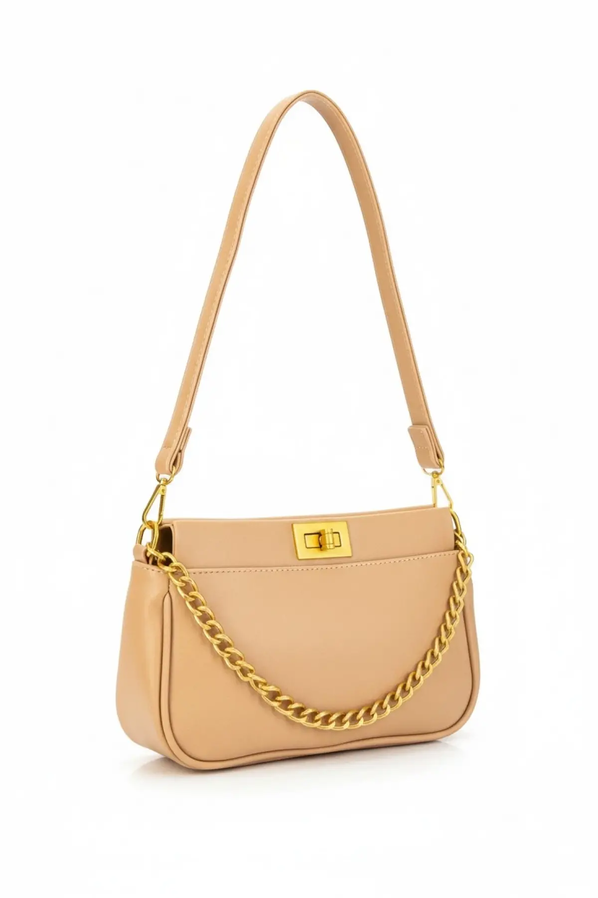 Patricia Vizon Kilit Kapamalı Zincir Detaylı Kadın El Kol Ve Omuz Çantası