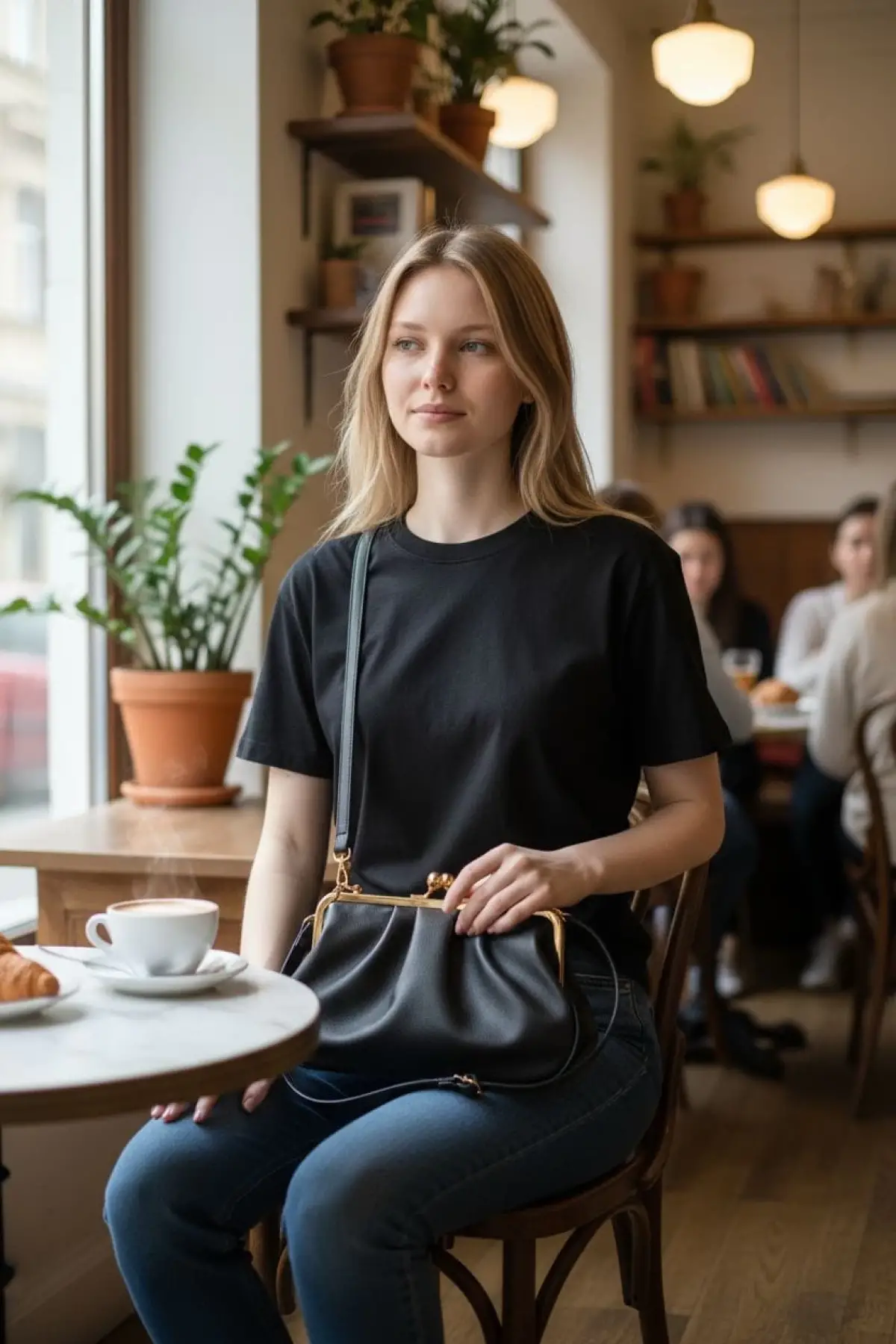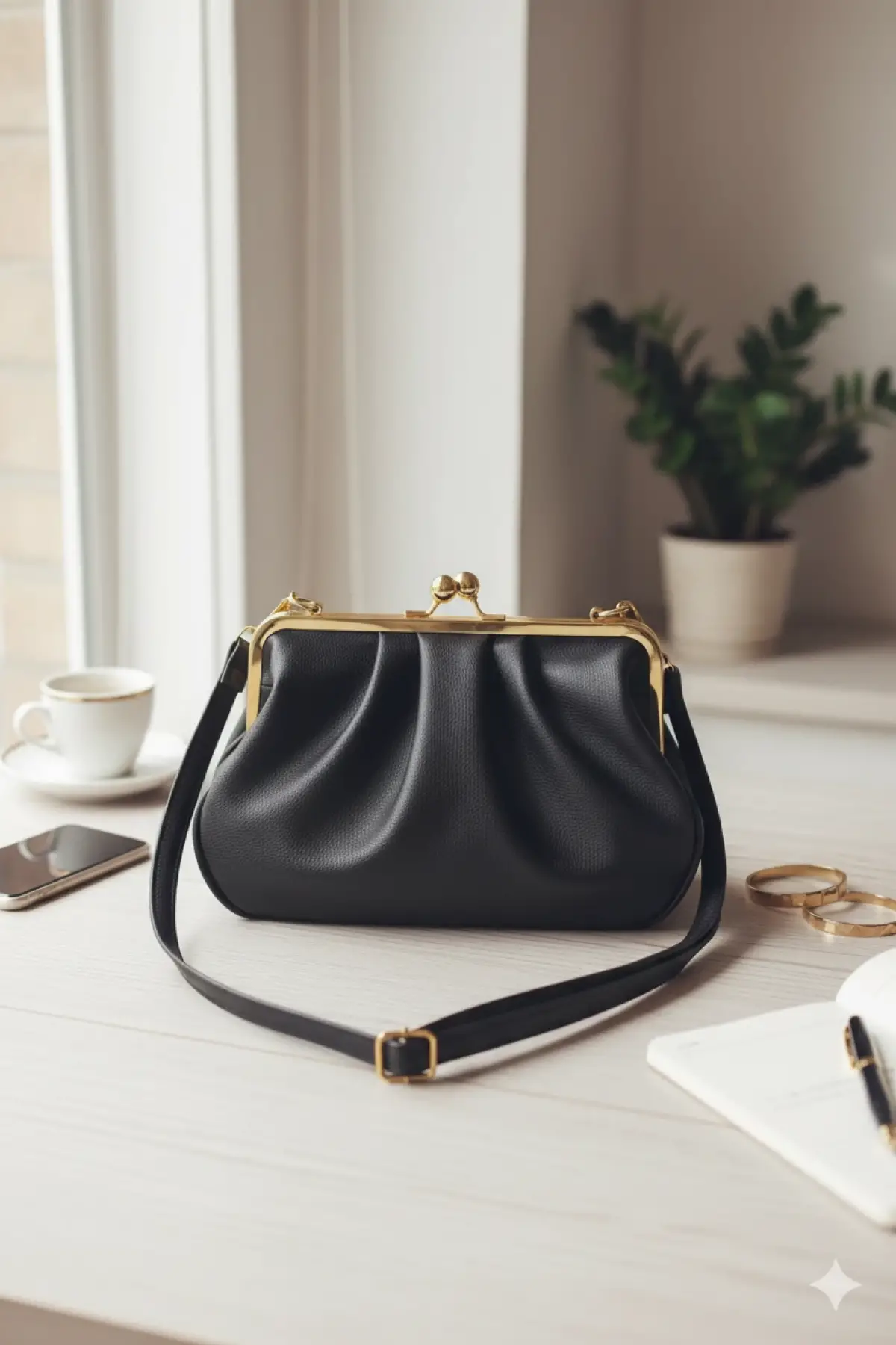 Piera Siyah Cilt Burslu Kadın El Kol Ve Omuz Çantası