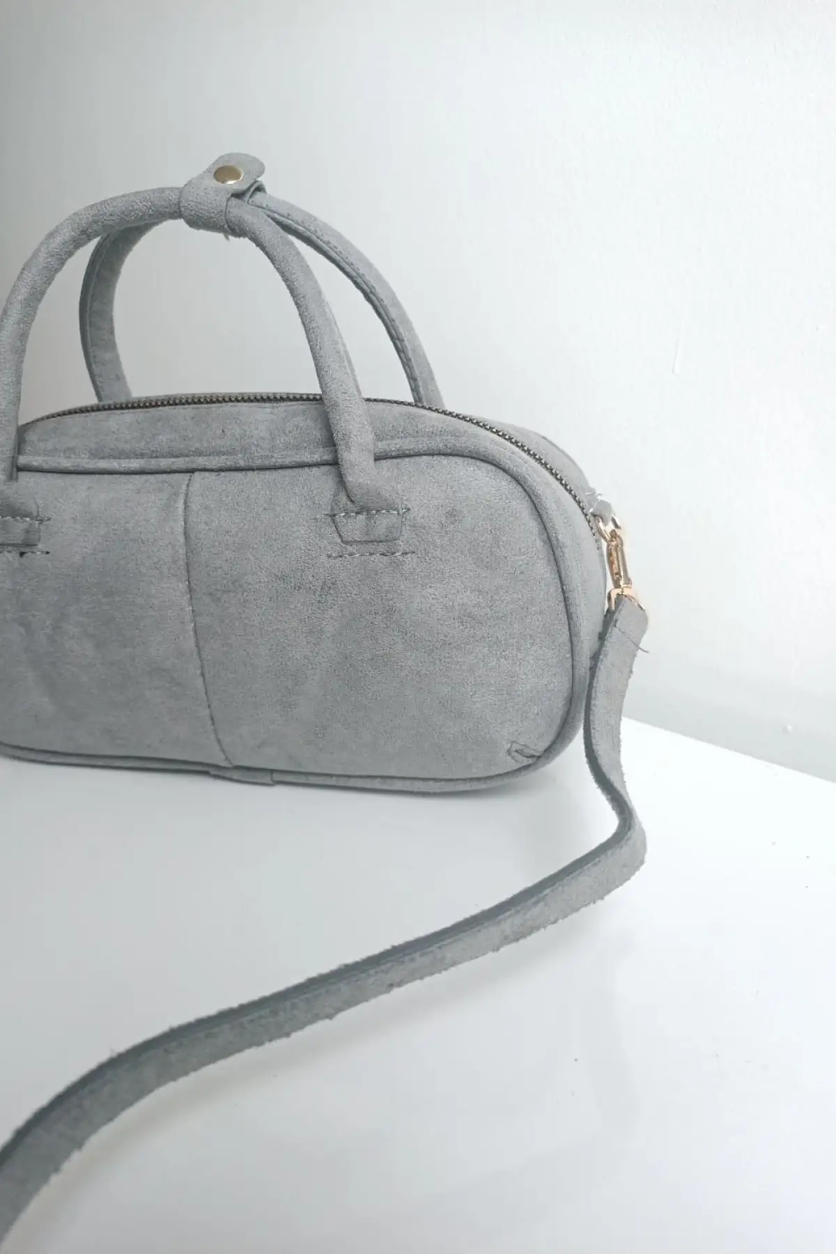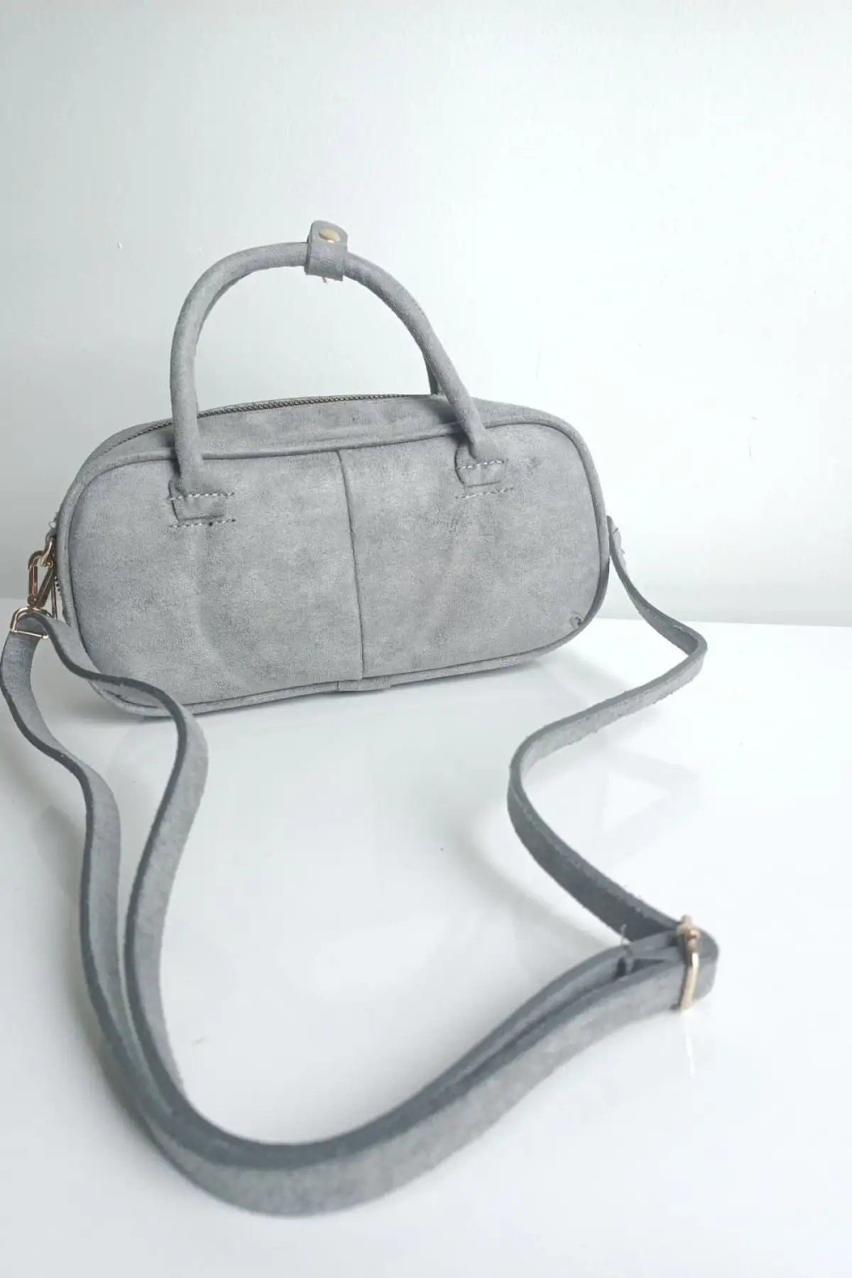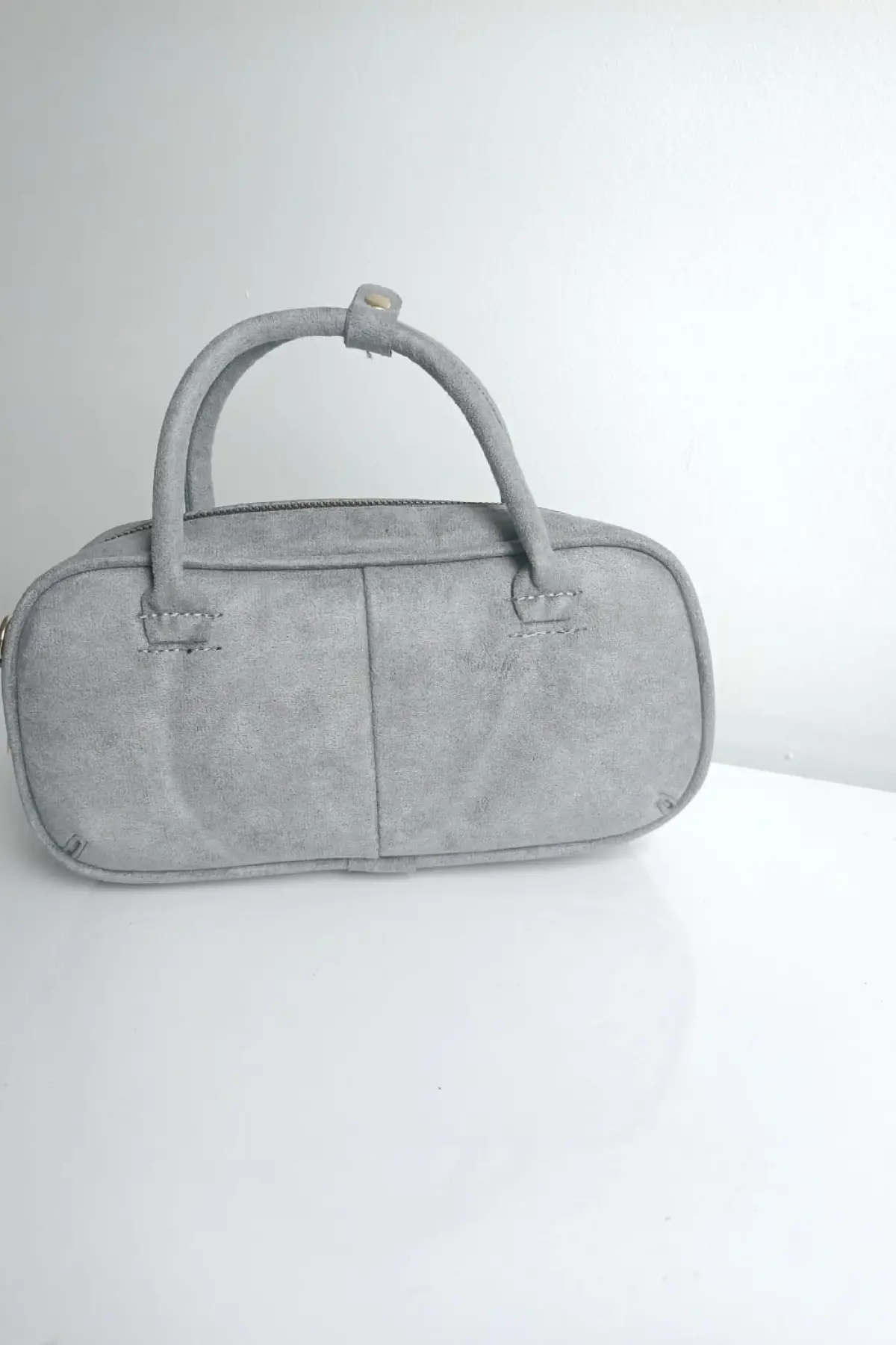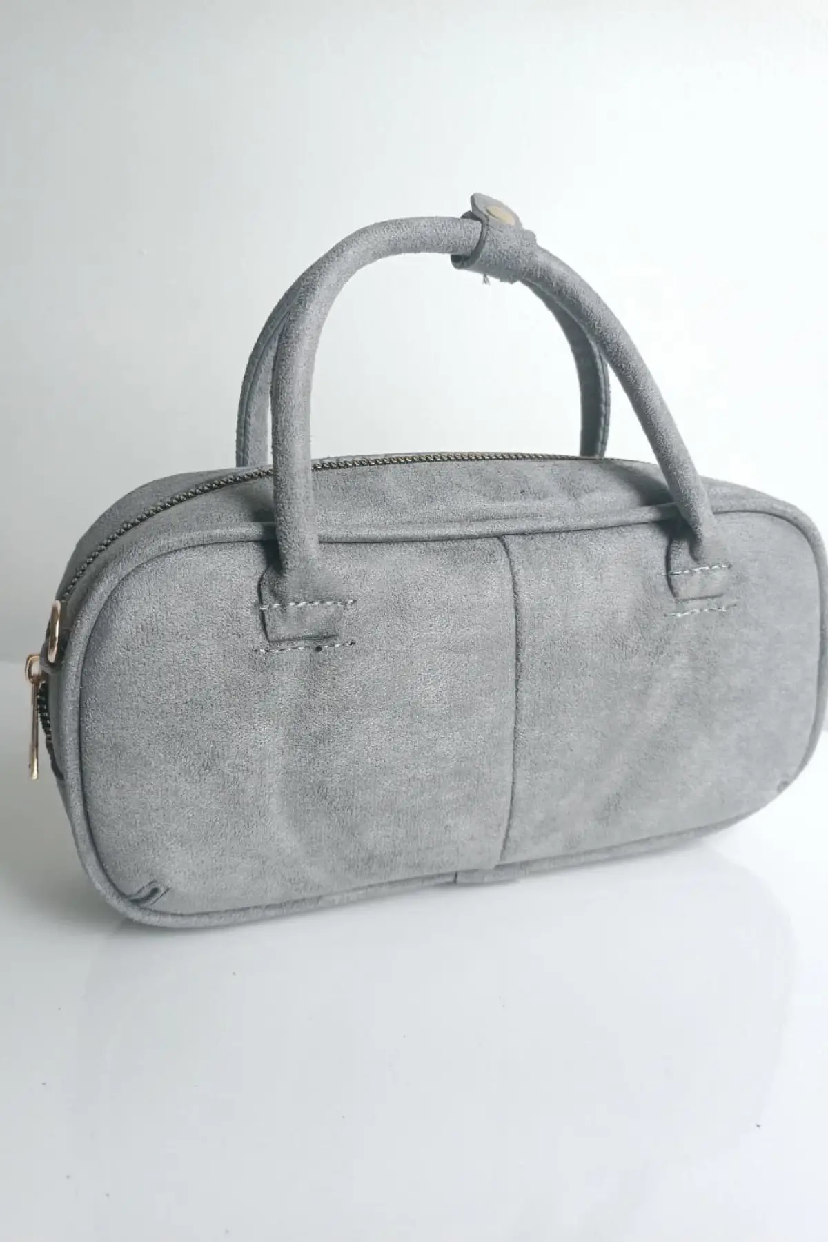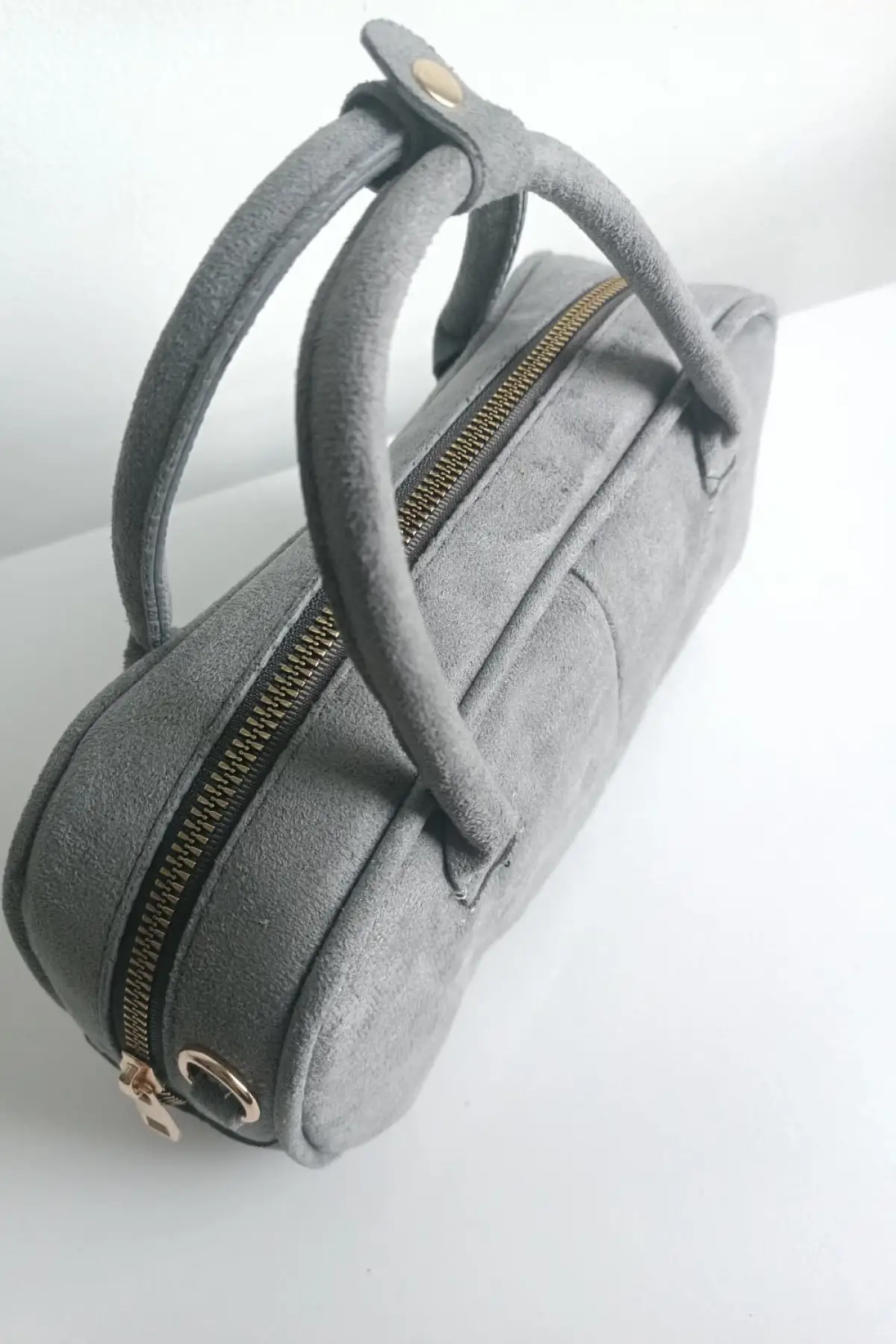 Raya Gri Süet Fermuarlı Kadın El Ve Omuz Çantası