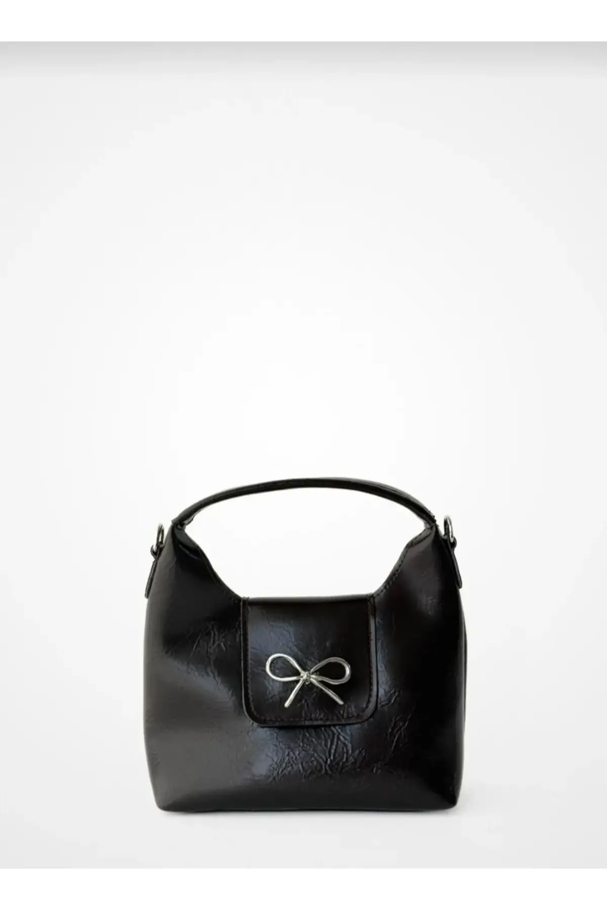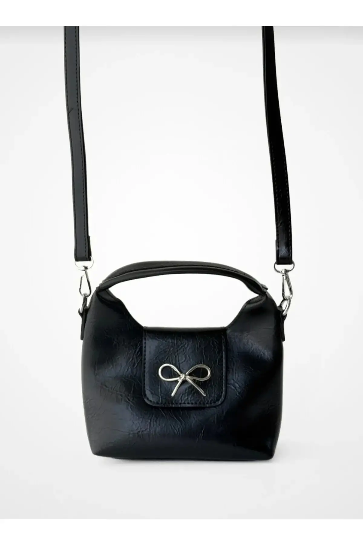 Ribbon Siyah Mini Kadın El Kol Ve Omuz Çantası
