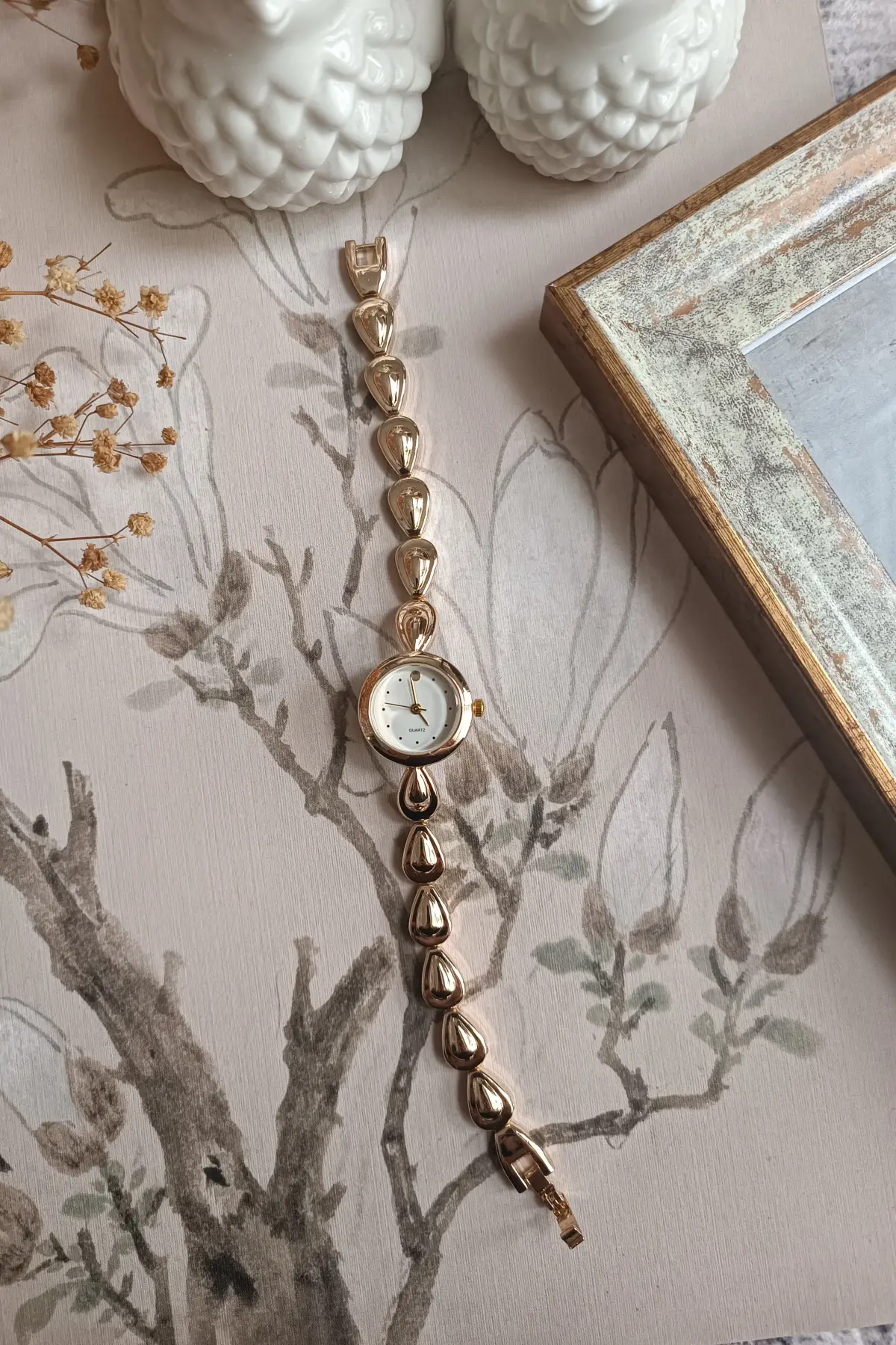 Riva Gold Damla Model Kordon Yuvarlak Beyaz Kadran Minimal Kadın Kol Saati