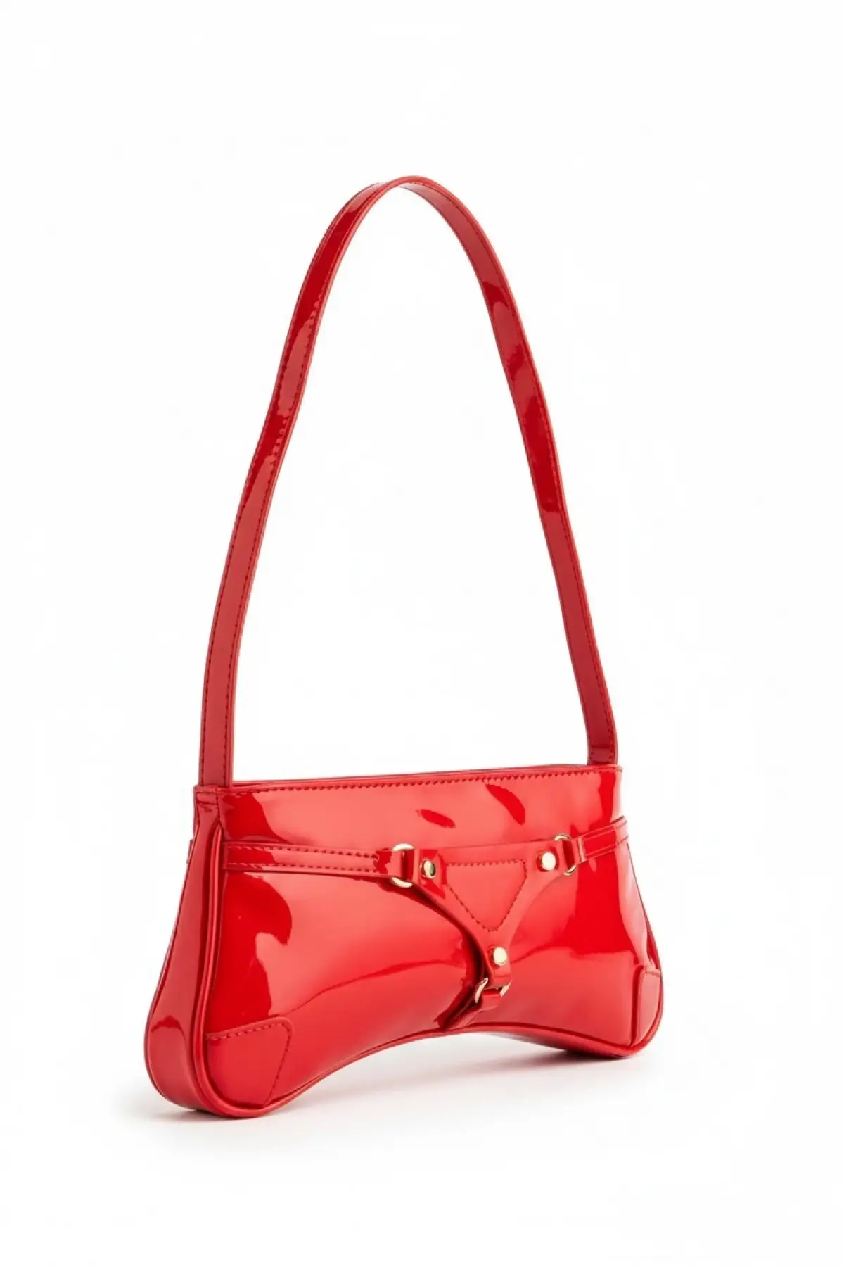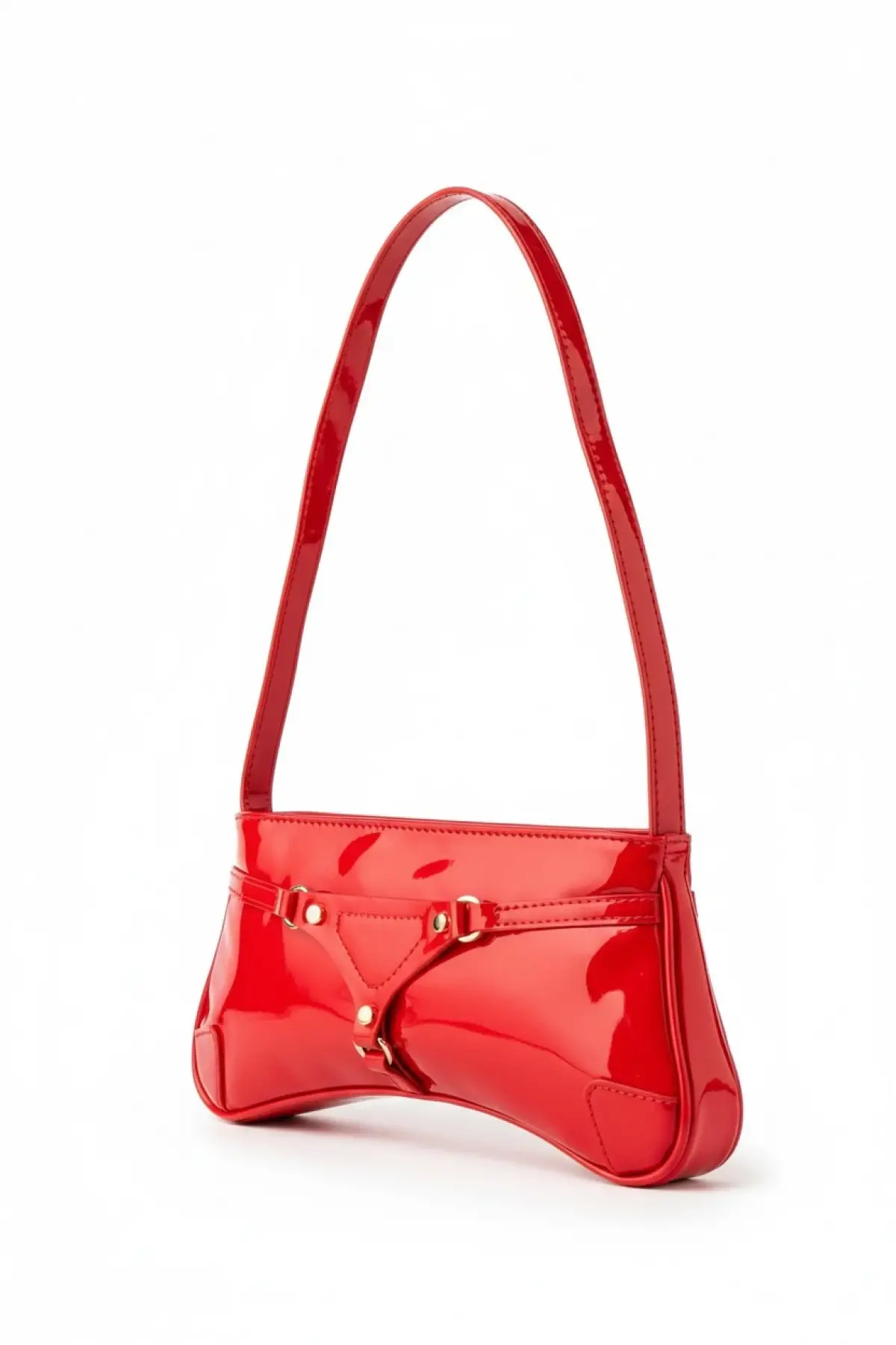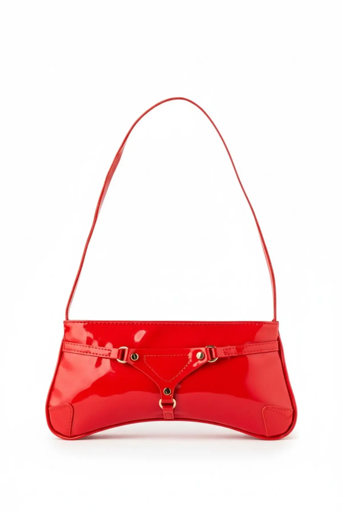 Samuel Kırmızı Üçgen Detay Aksesuarlı Baget Kadın Omuz Çantası