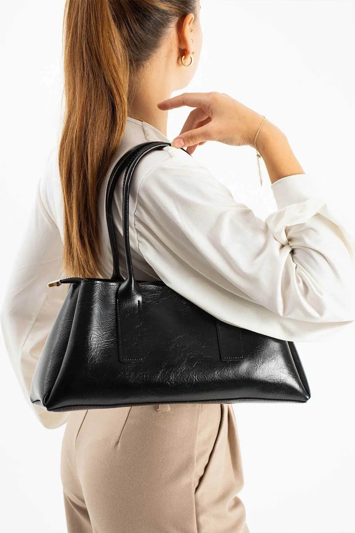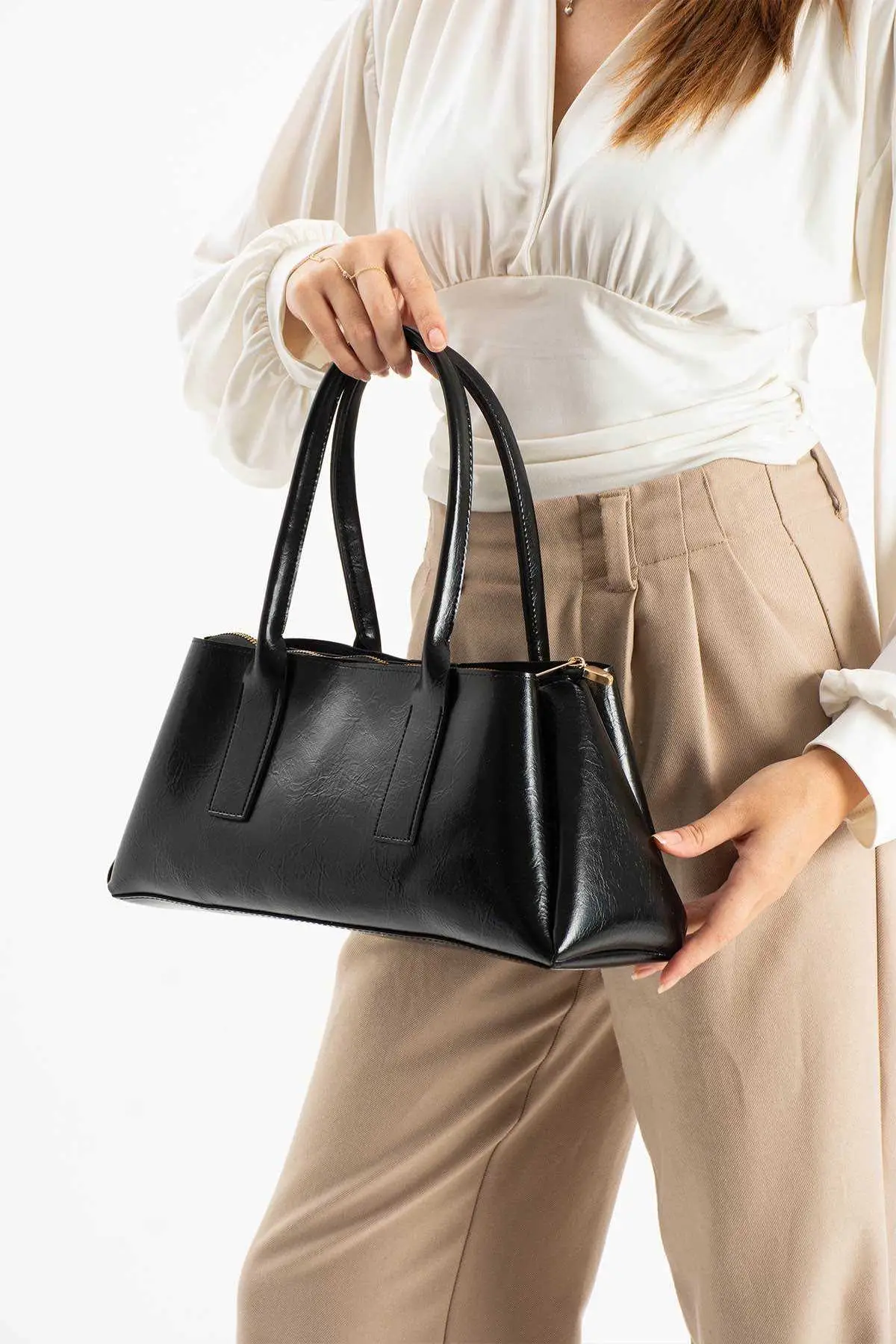 Misty Siyah Cilt Fermauar Kapama Kadın El Kol Ve Omuz Çantası