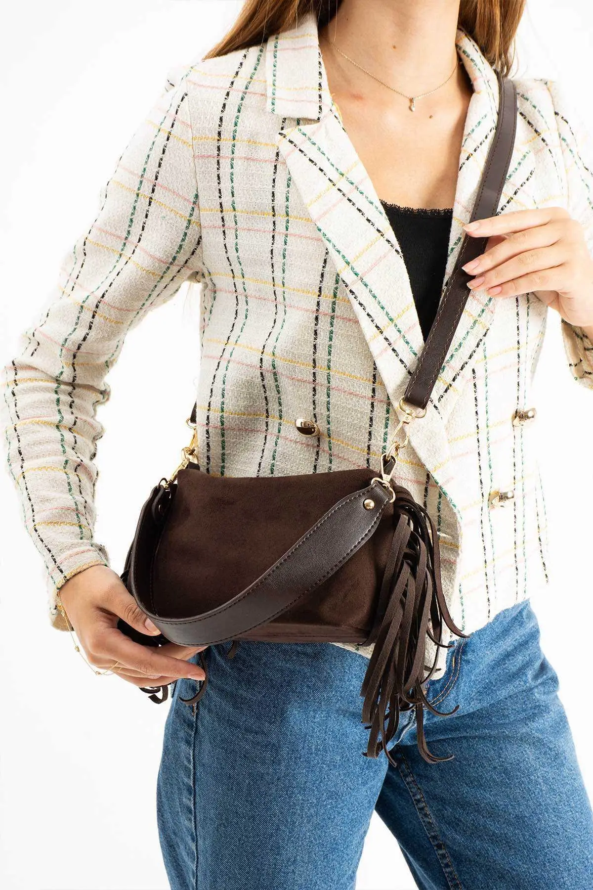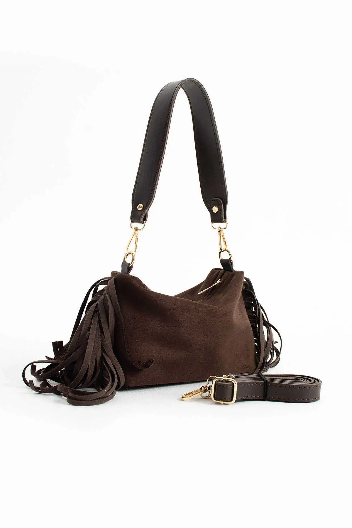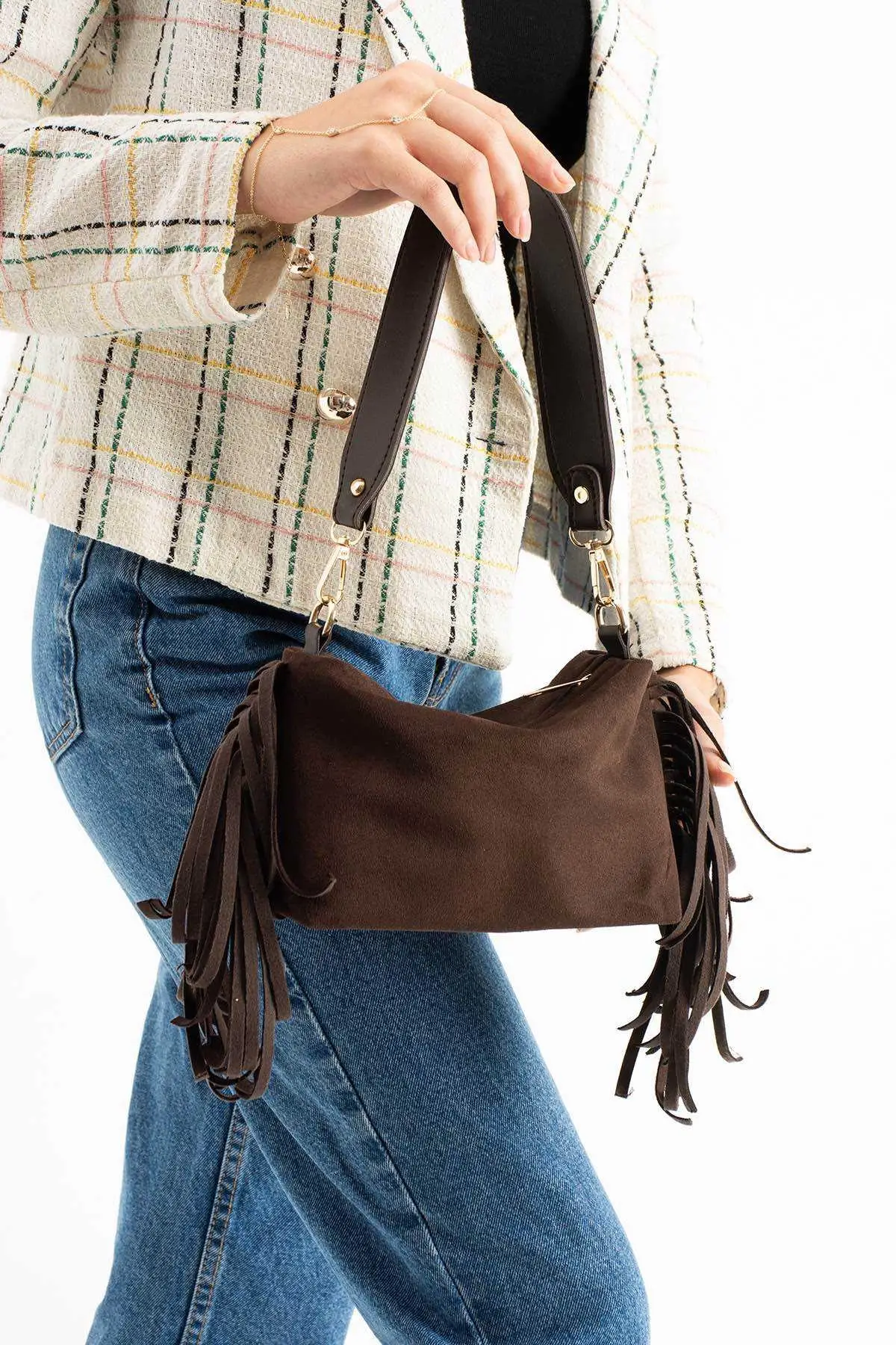 Sauve Kahve Süet Püskül Detaylı Fermuar Kapamalı Kadın Kol Ve Omuz Çantası
