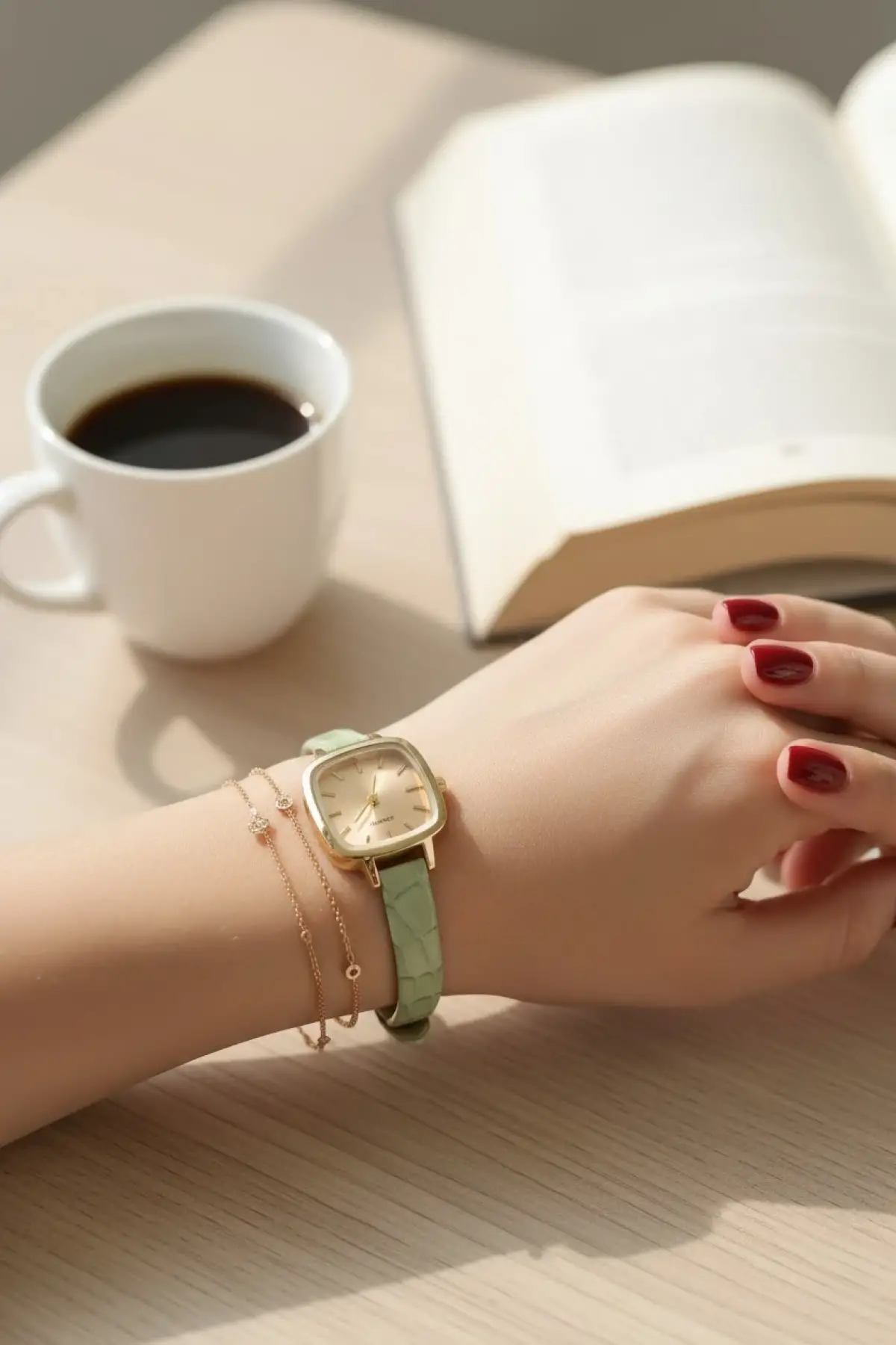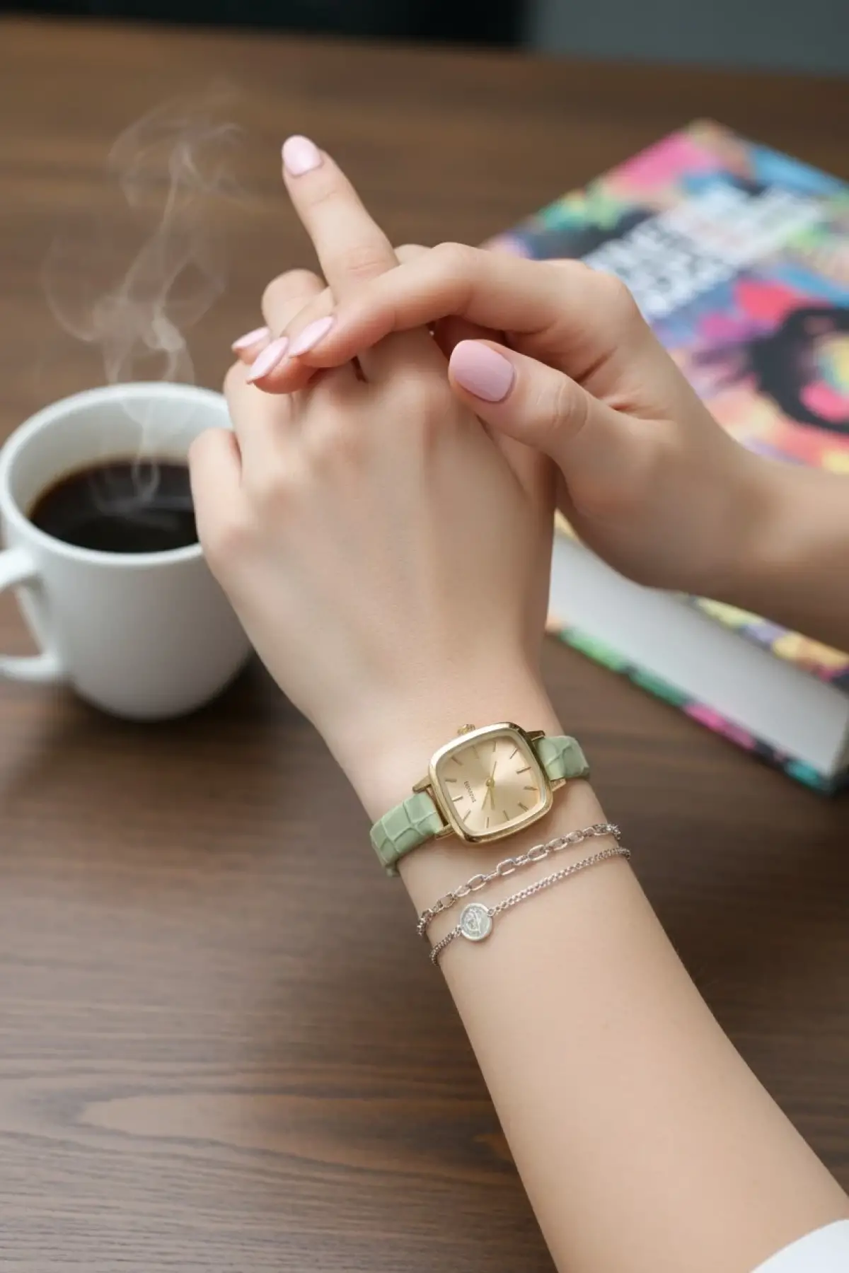 Seraphina Mint Yeşili Kroko Deri Kordonlu Yeşil Kare Minimal Kadın Kol Saati