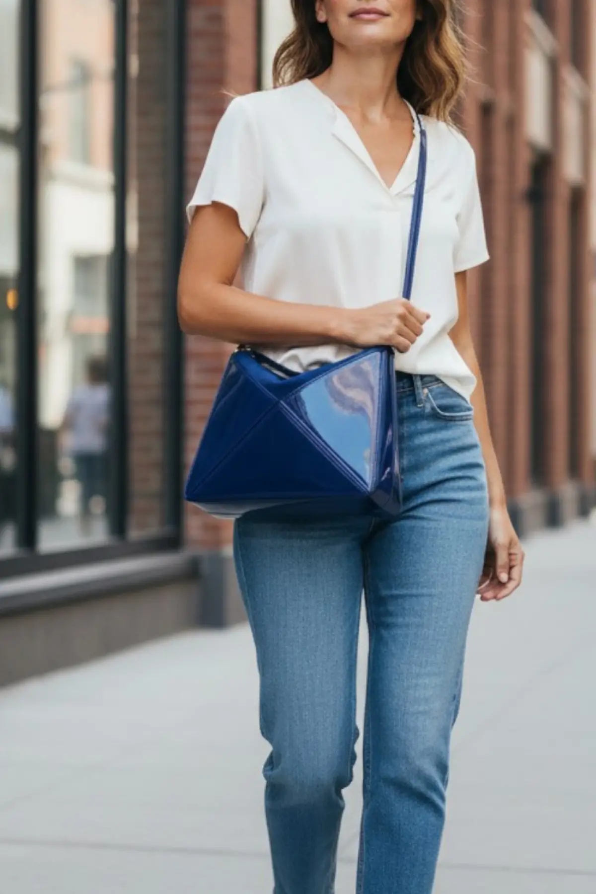 Serena Lacivert Rugan Üçgen Detaylı Kadın El Kol Ve Omuz Çantası