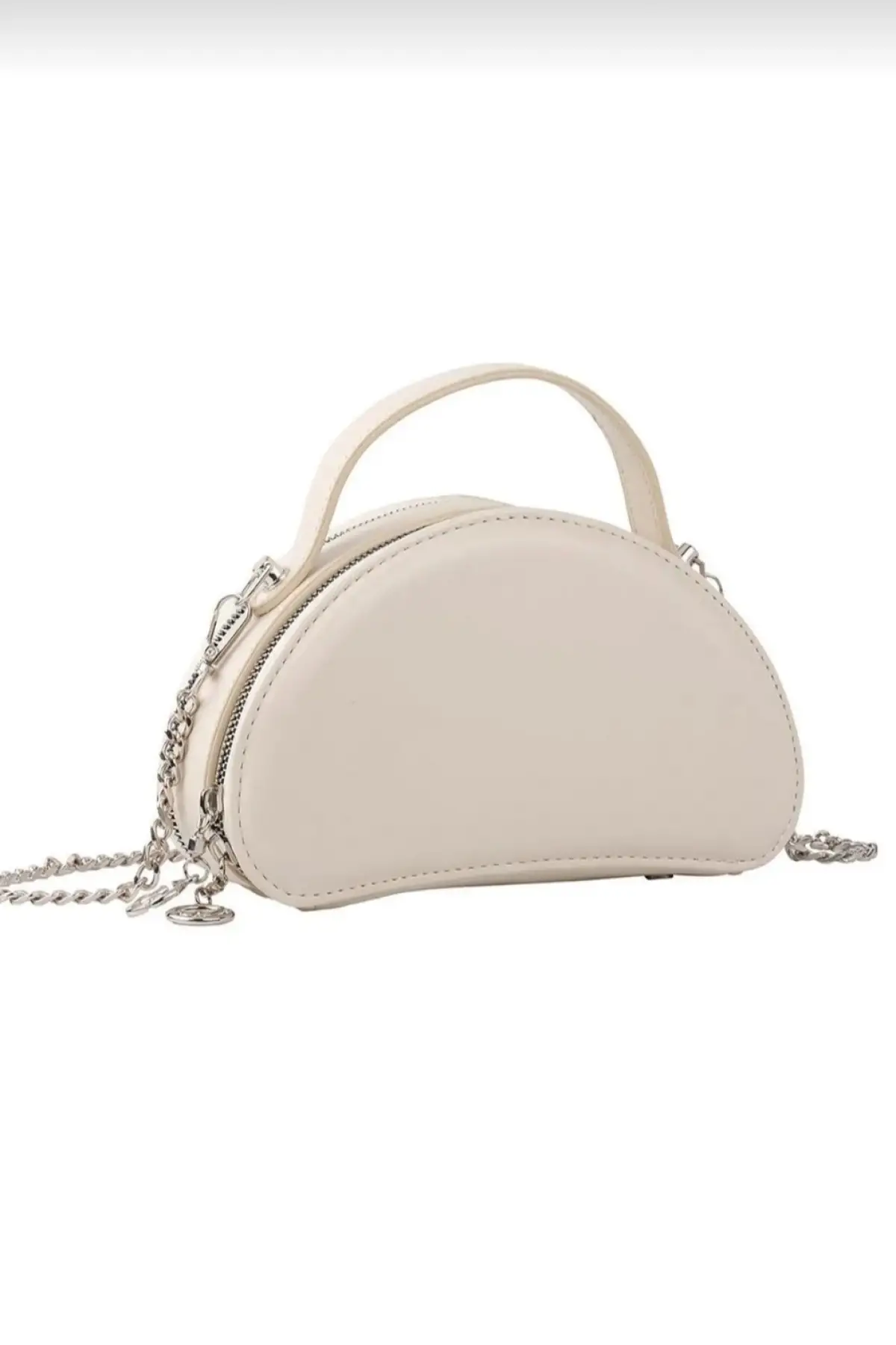 Melina Krem Vegan deri üç bölmeli fermuar kapamalı Kadın el kol ve omuz çantası
