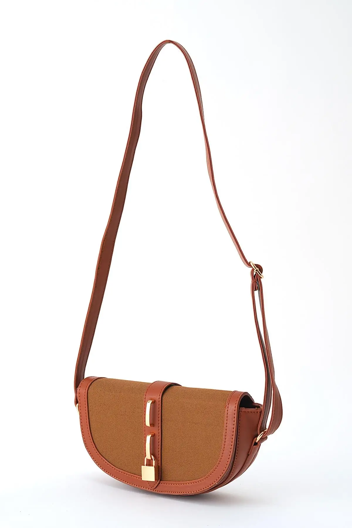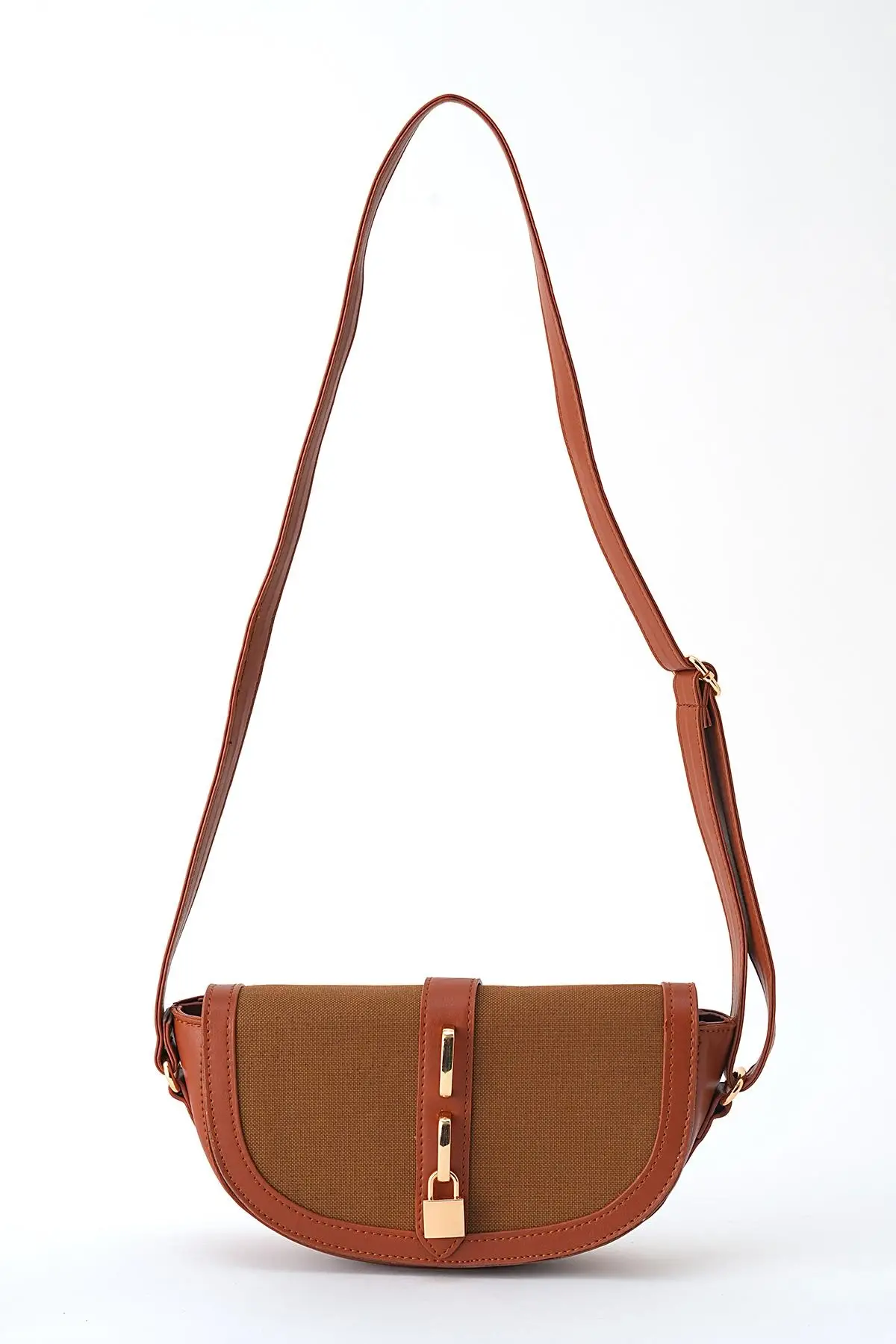 Stella Taba Kilit Aksesuarlı Keten Deri Detaylı Çapraz Askılı Trend Kadın Omuz Çantası