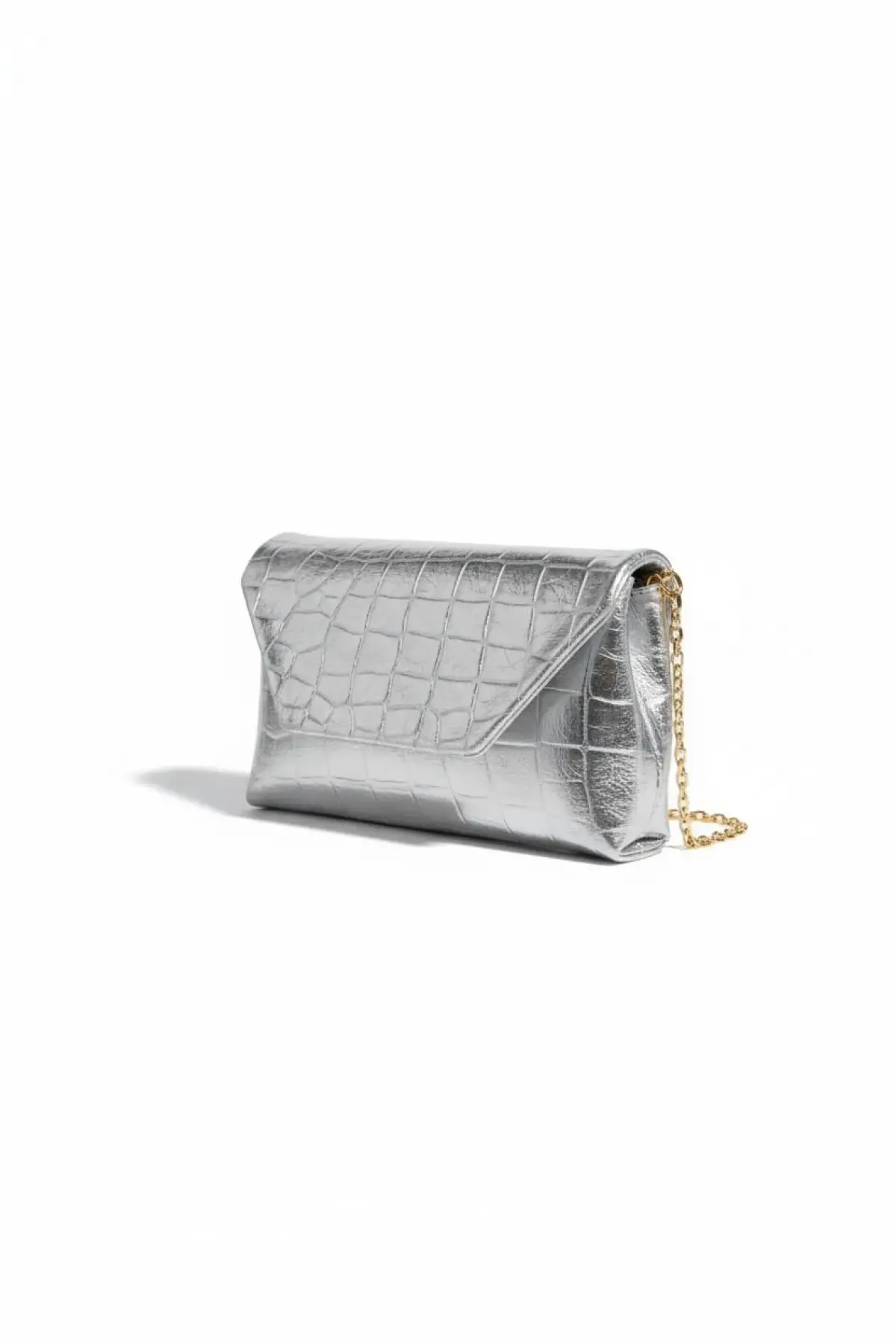 Suffle Gümüş Croco Desen Zincir Askılı Kadın Omuz Çantası