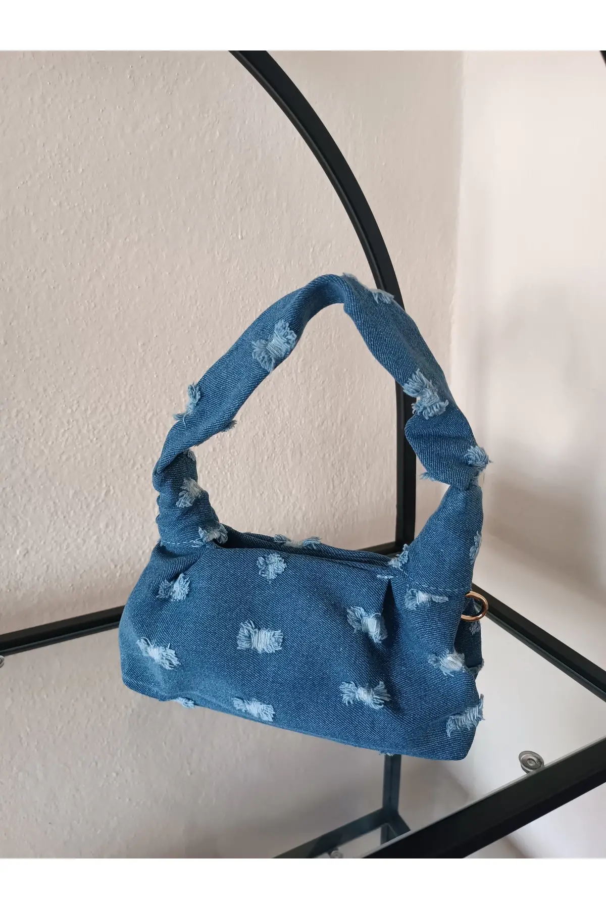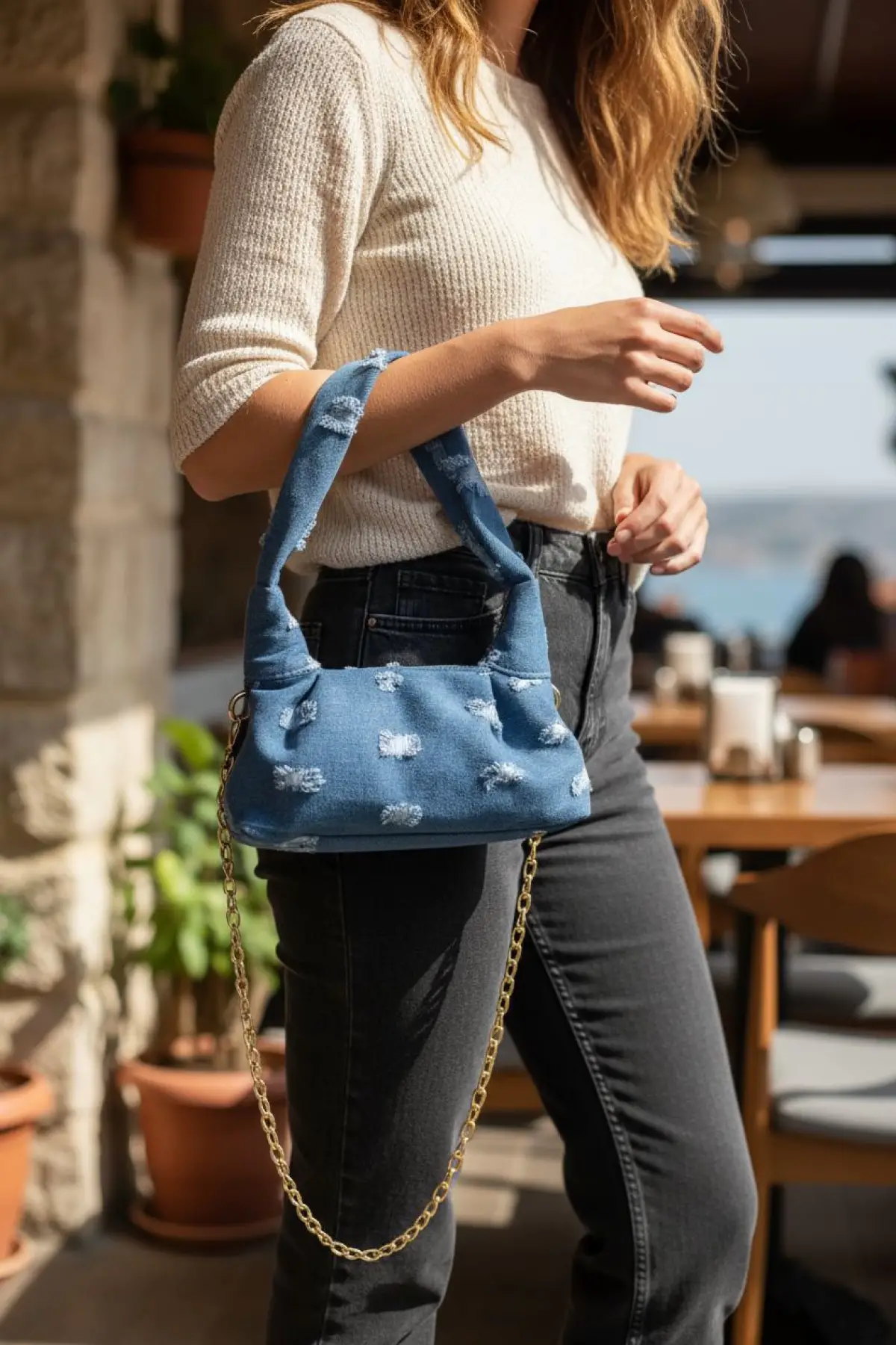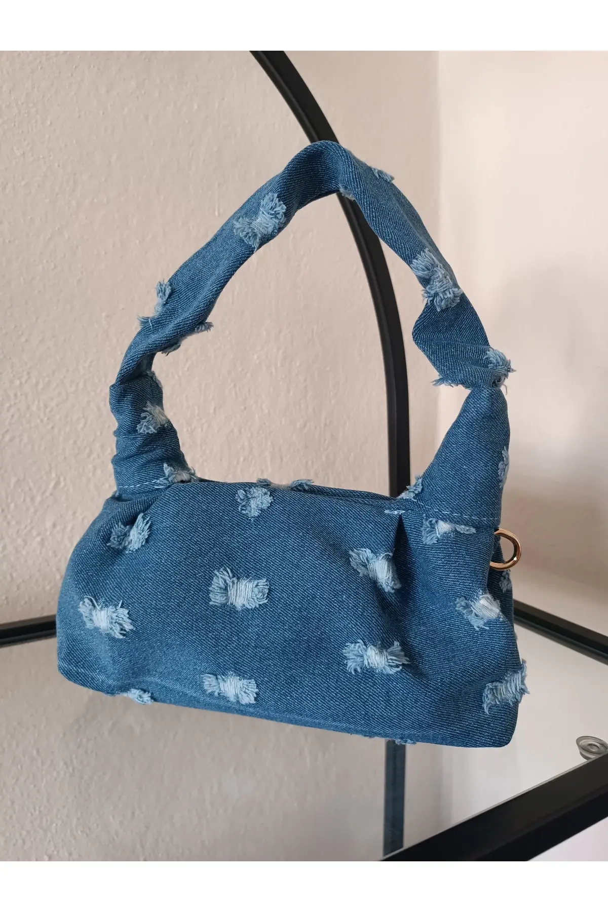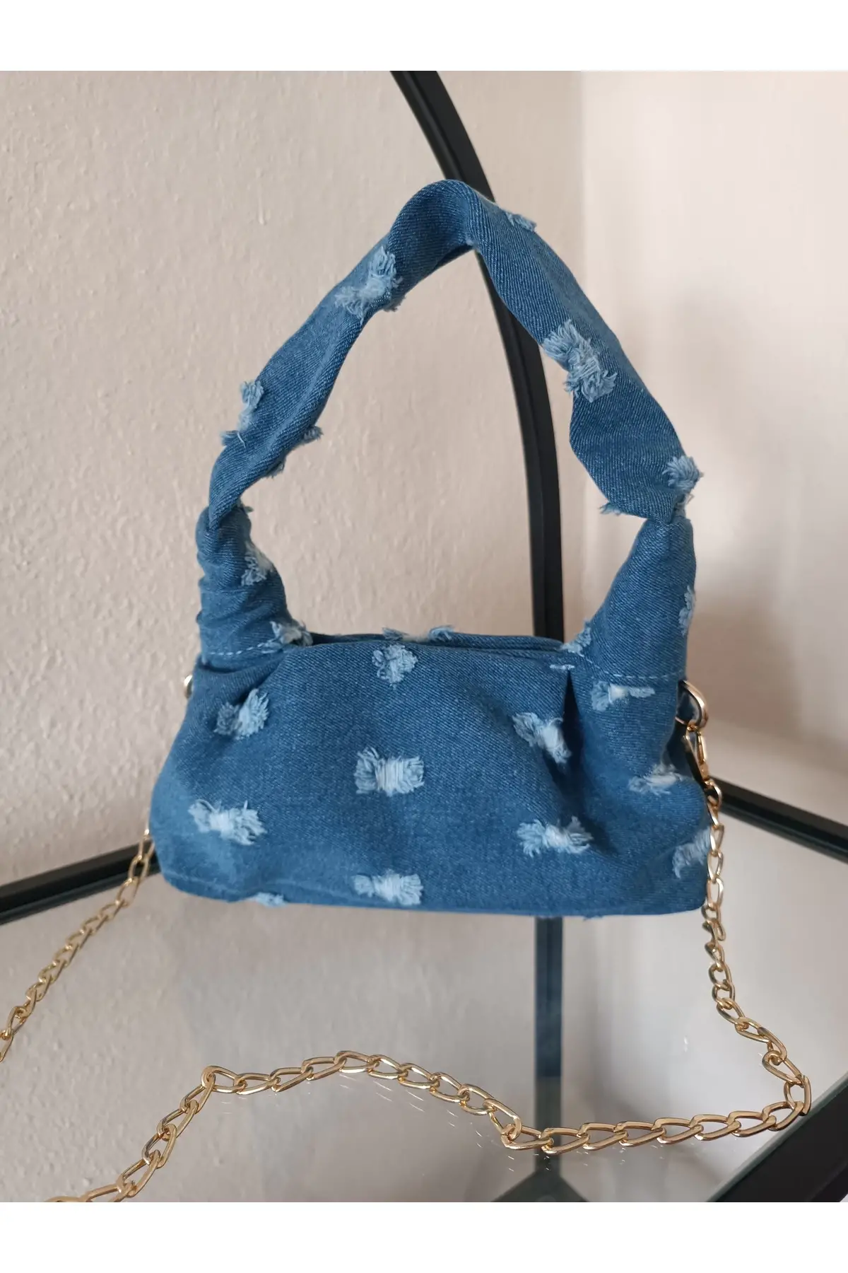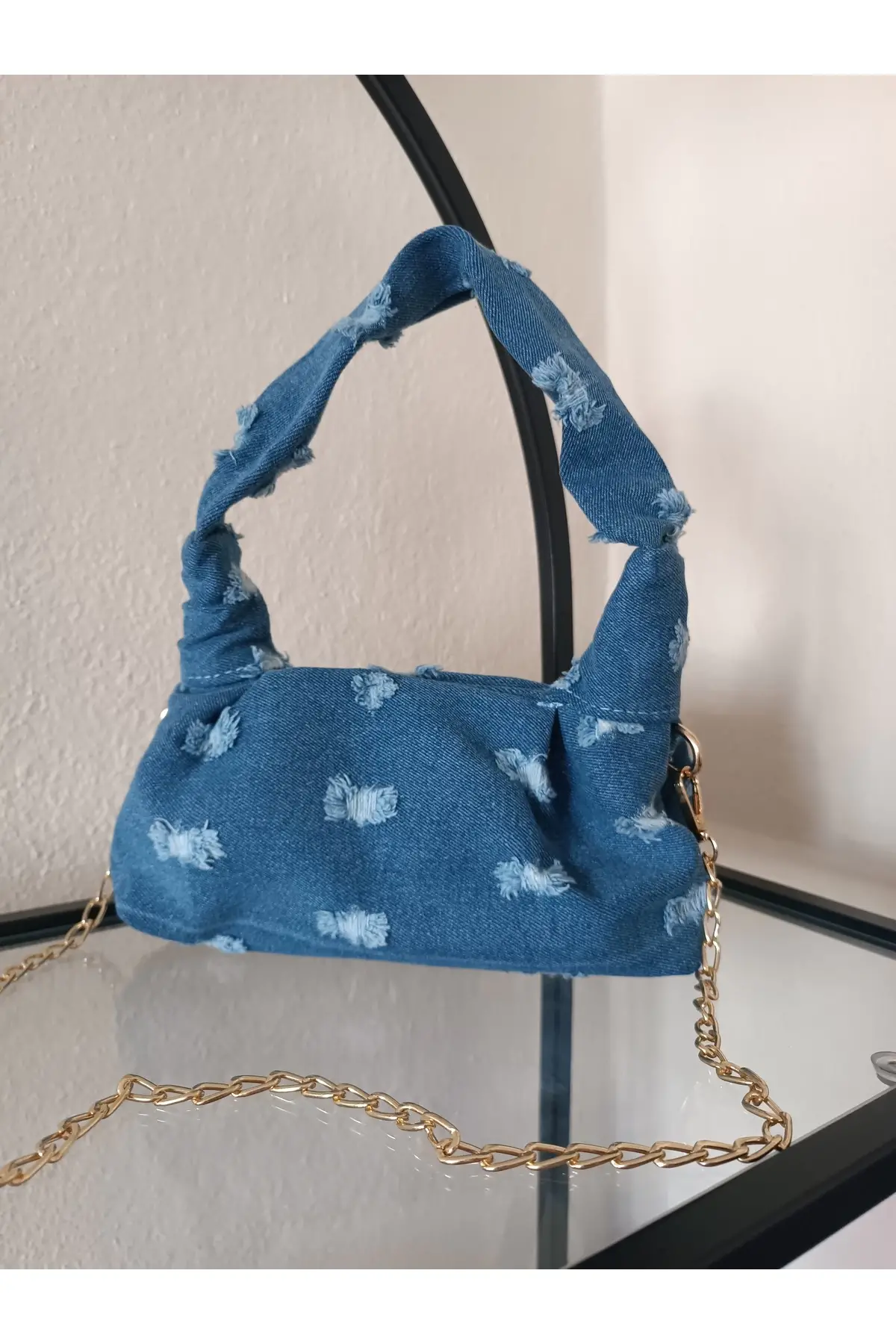 Talia Yırtık Kot Desenli Zincir Askılı Kadın Omuz Çantası