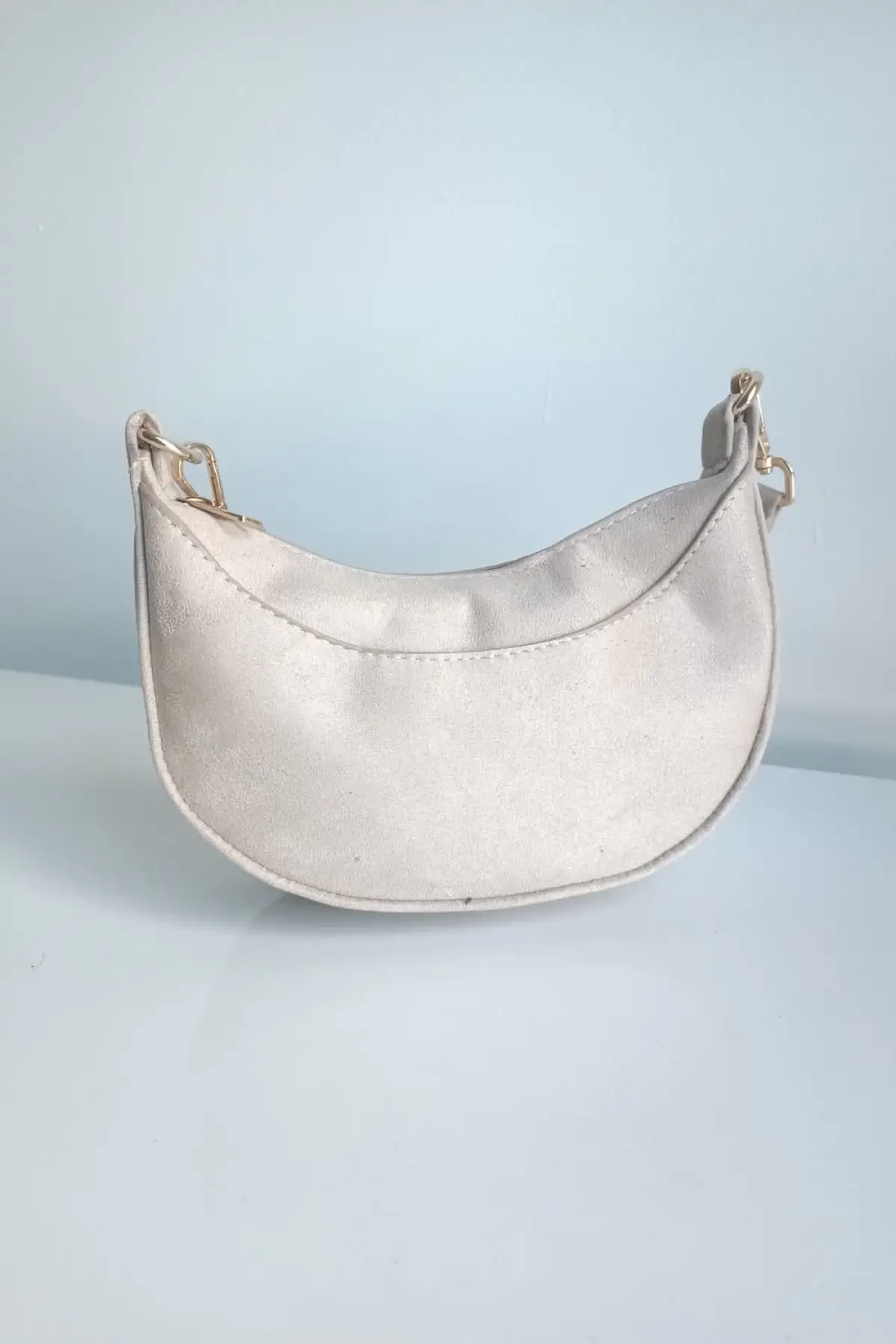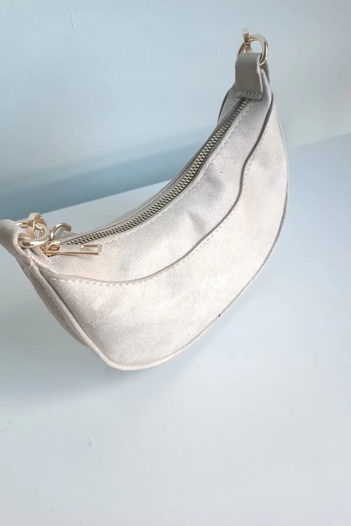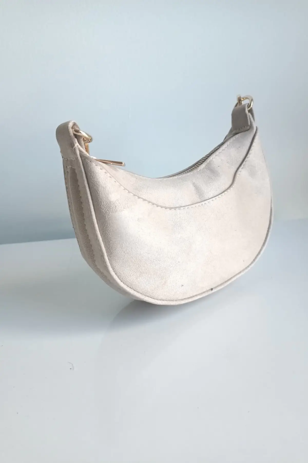 Vanya Krem Süet Mini Fermuar Kapamalı Kadın El Ve Omuz Çantası