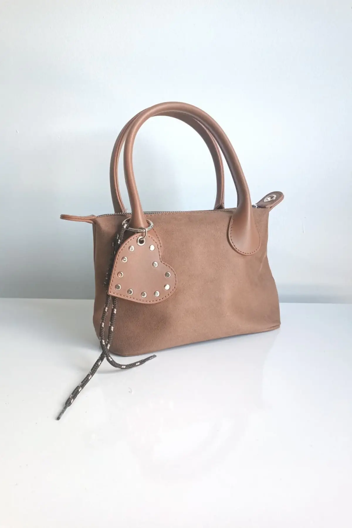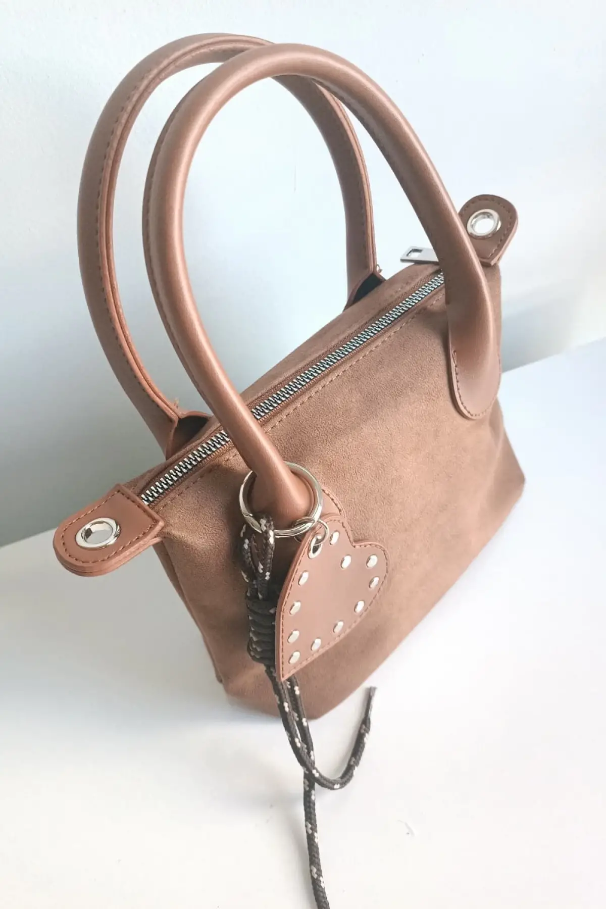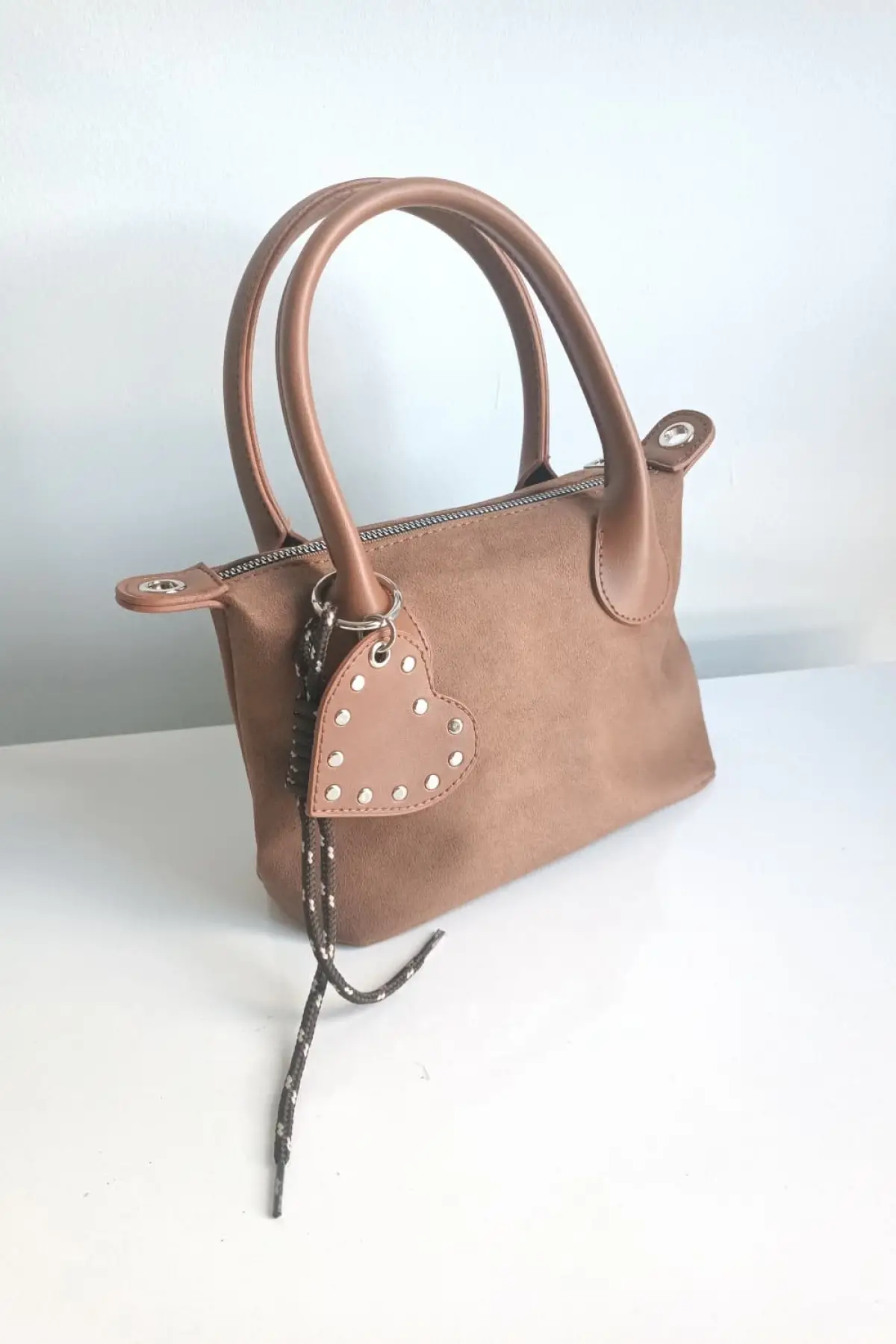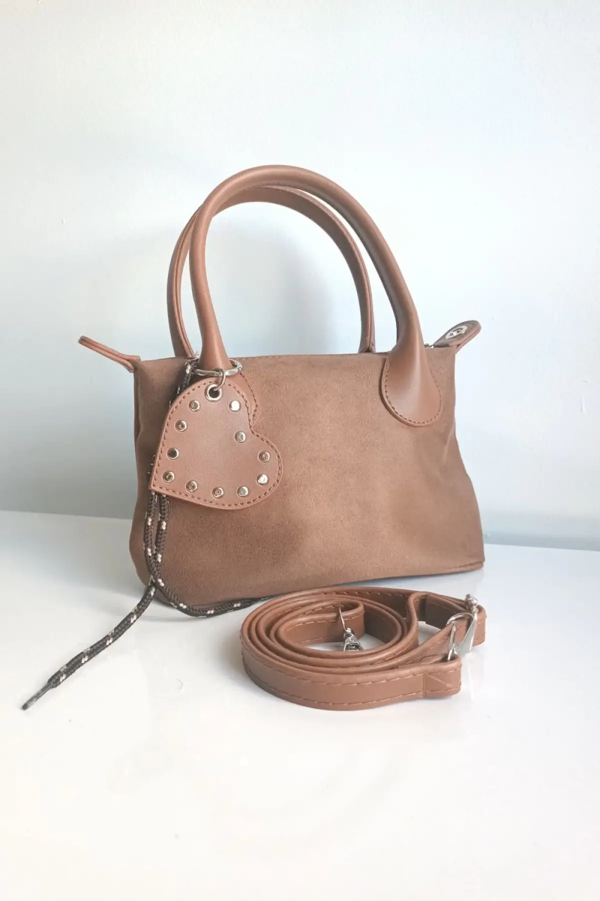 Tilda Taba Süet Kalp Charm Detaylı Fermuarlı Kadın El Ve Omuz Çantası