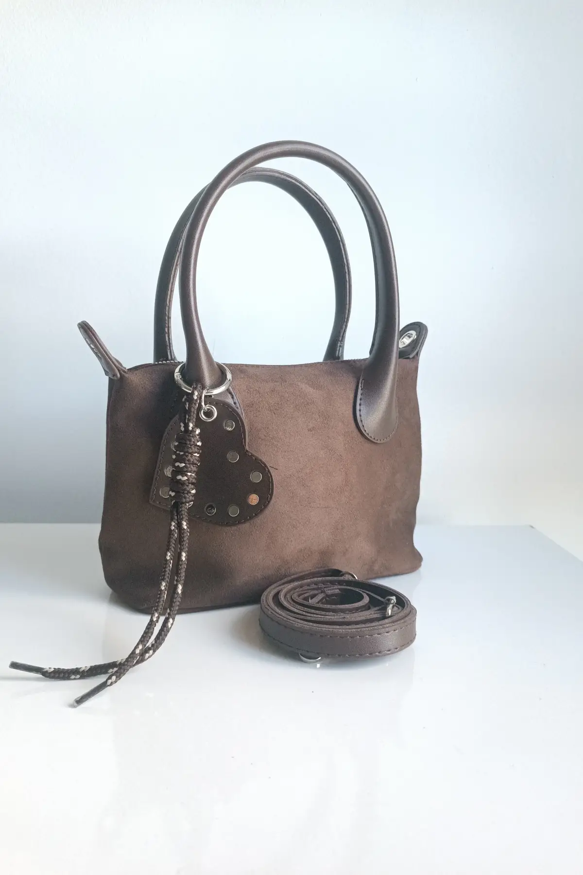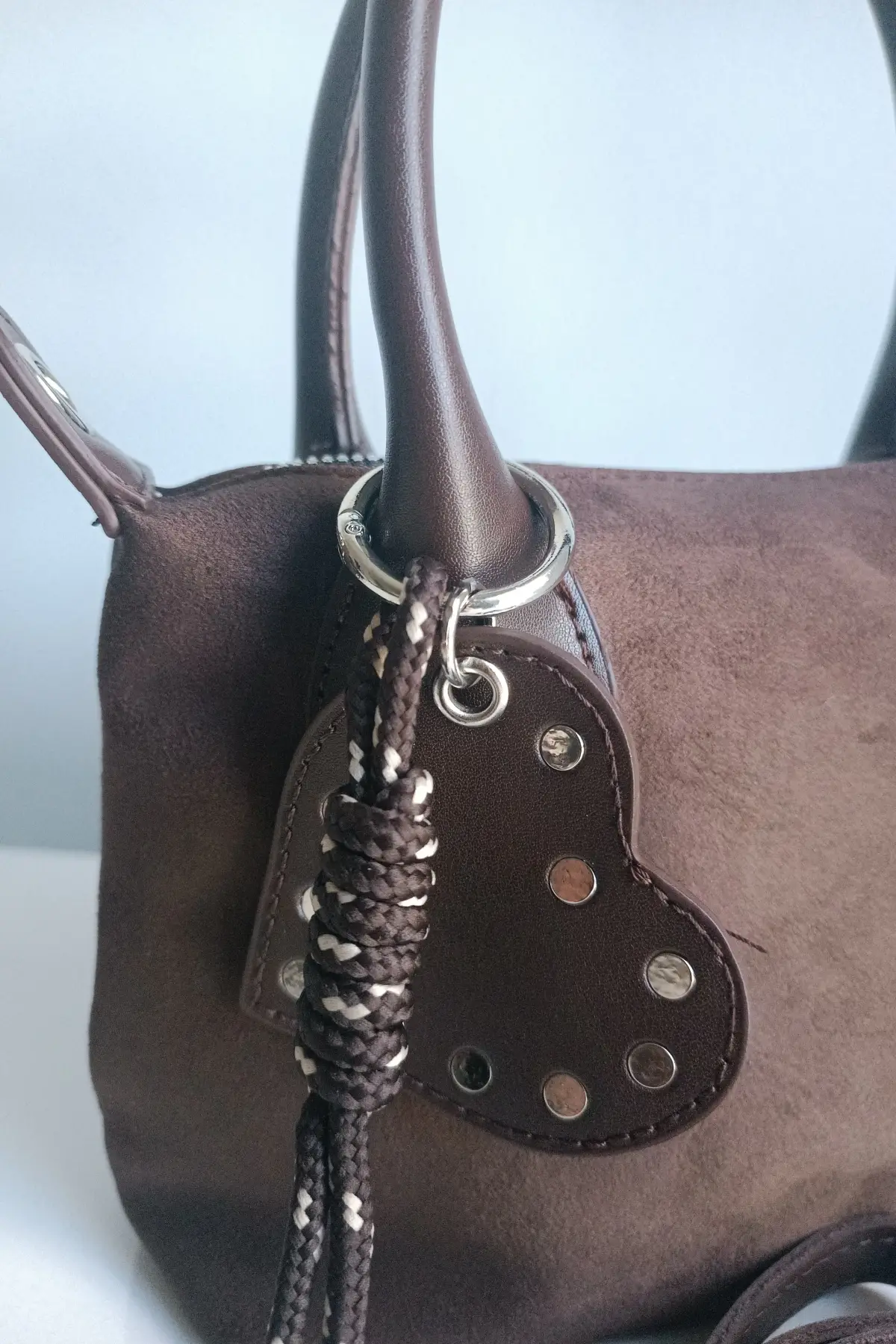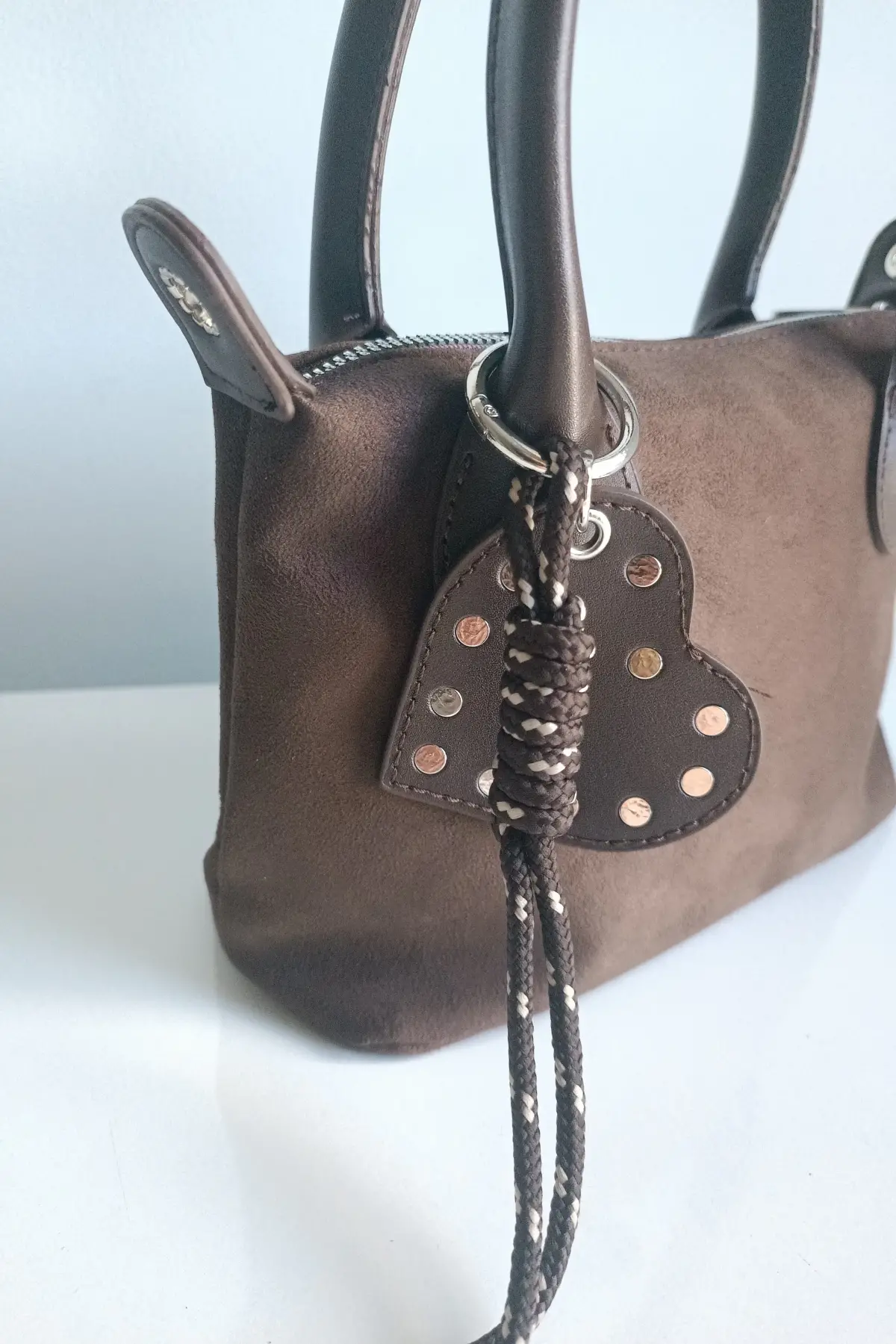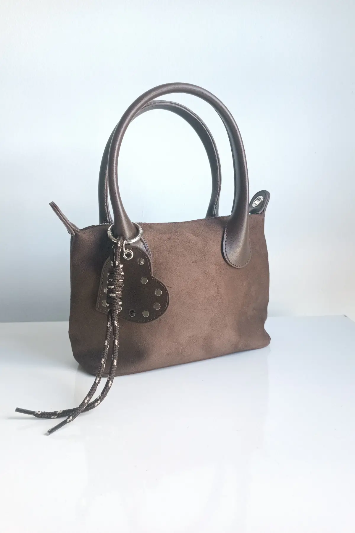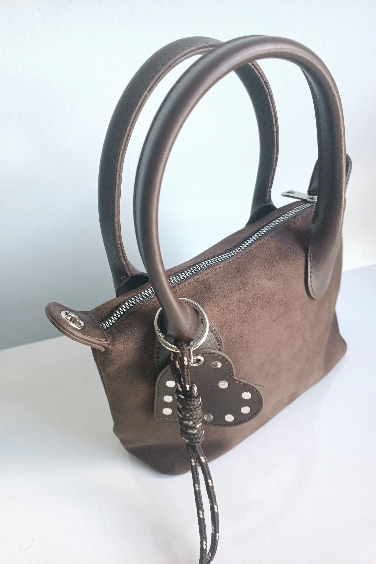 Tilda Acı Kahve Süet Kalp Charm Detaylı Fermuarlı Kadın El Ve Omuz Çantası