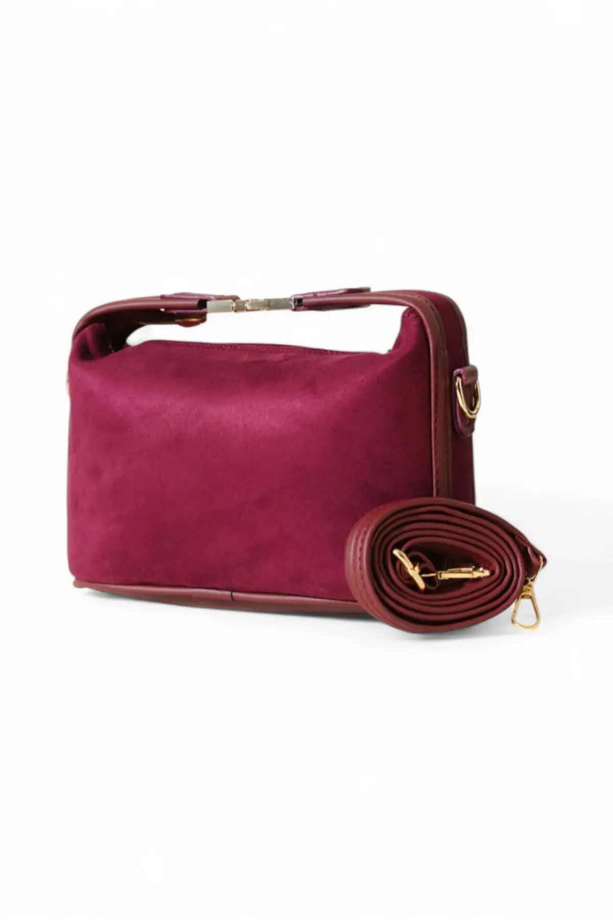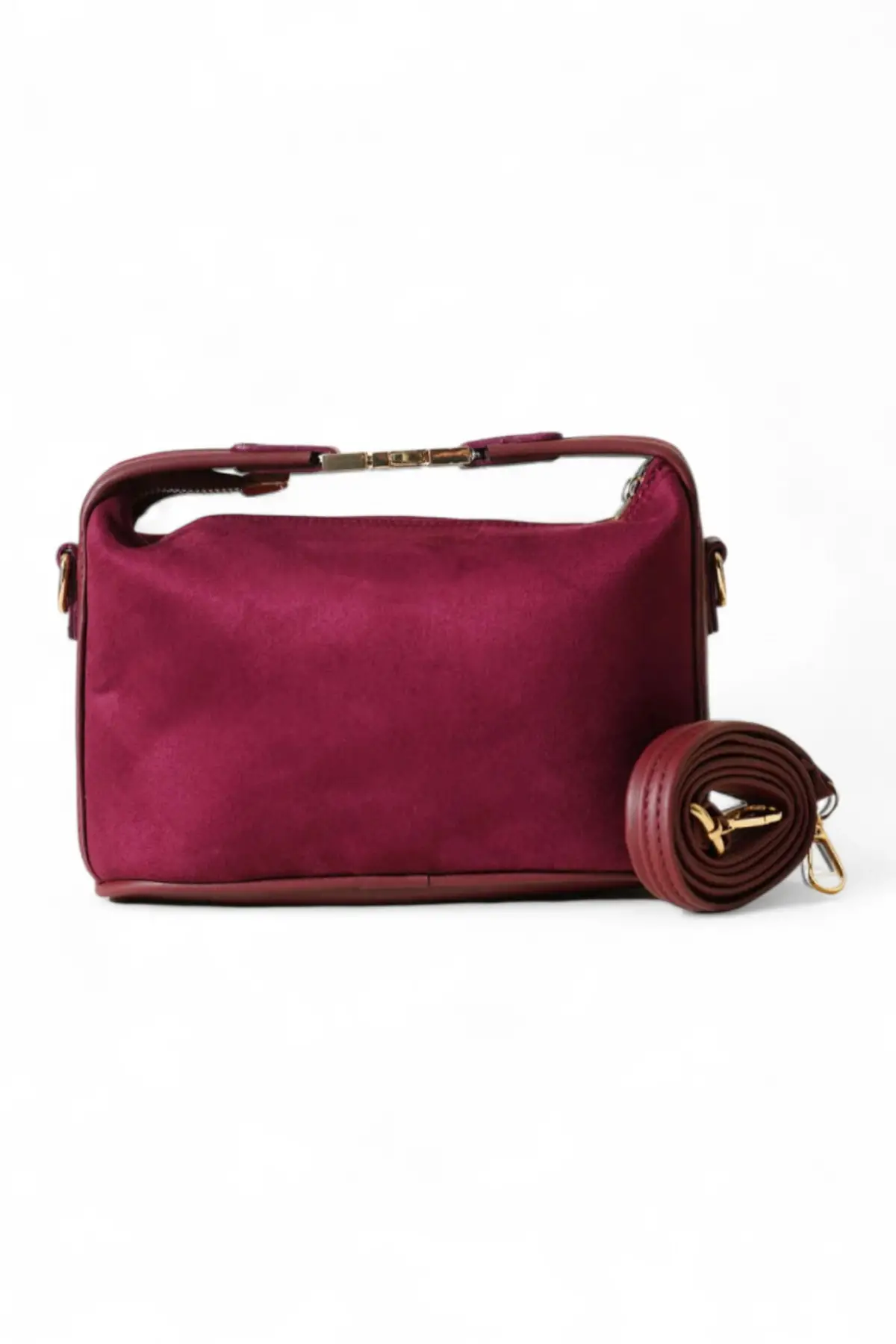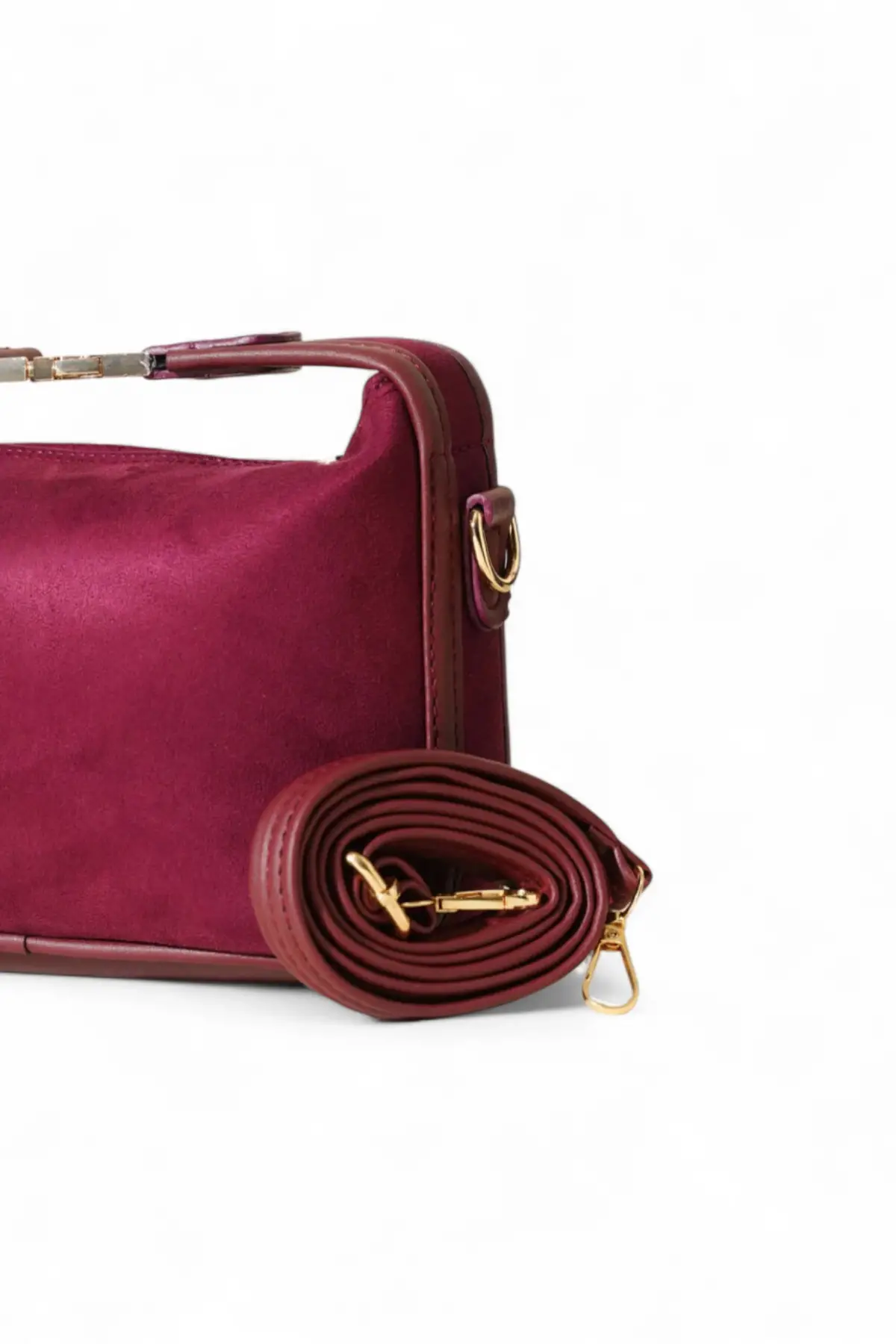 Toile Bordo Süet Nubuk Kilit Saplı Kadın El Kol Ve Omuz Çantası