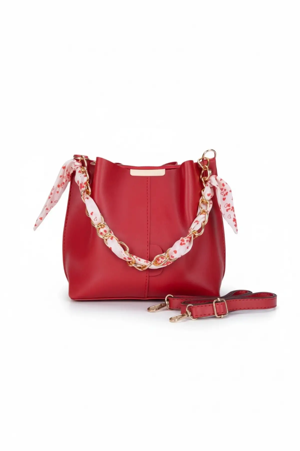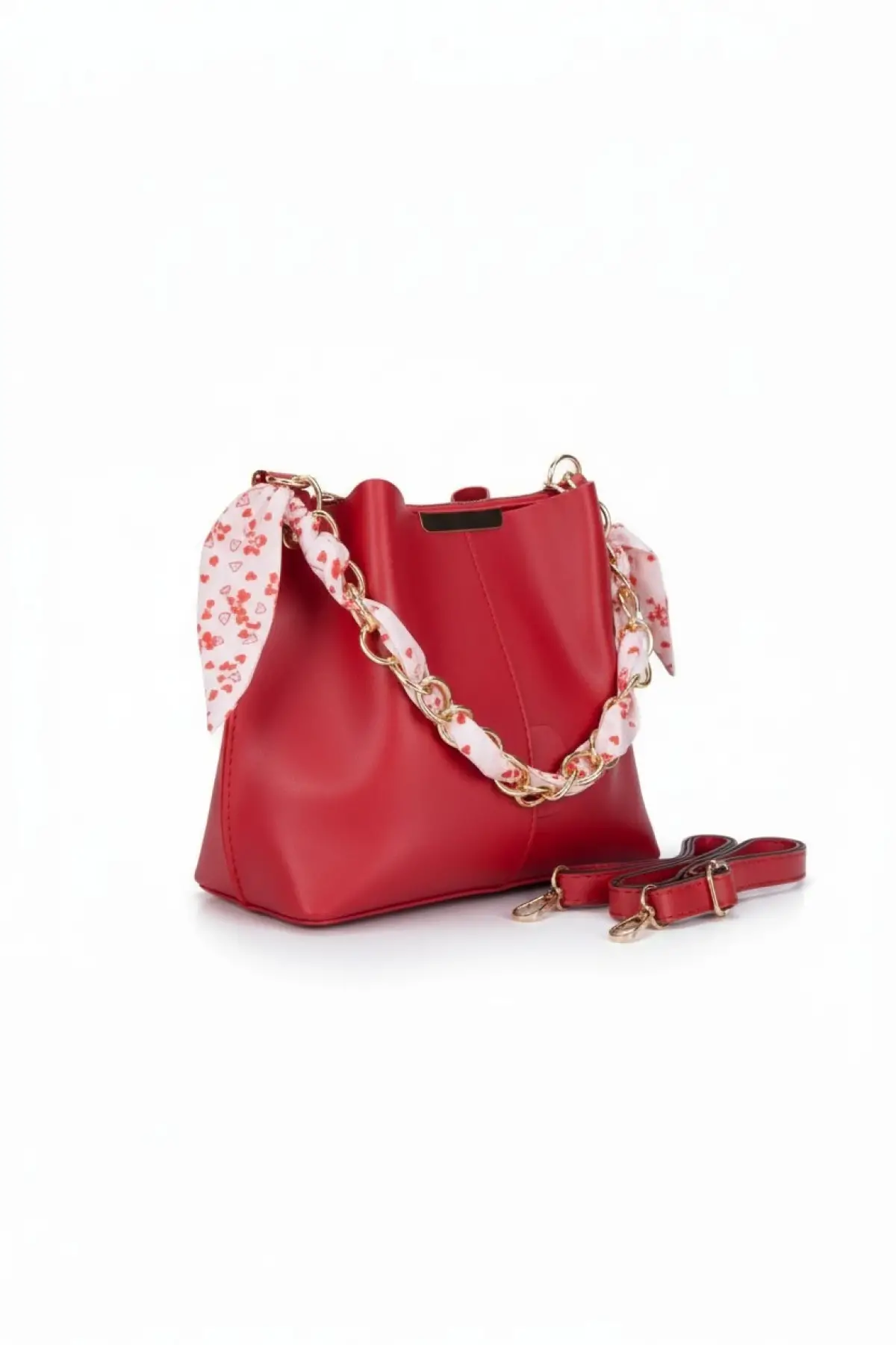 Valeria Üç Bölmeli Fularlı Ayarlanabilir Askılı Kırmızı Cilt Trend Kadın El Ve Omuz Çantası