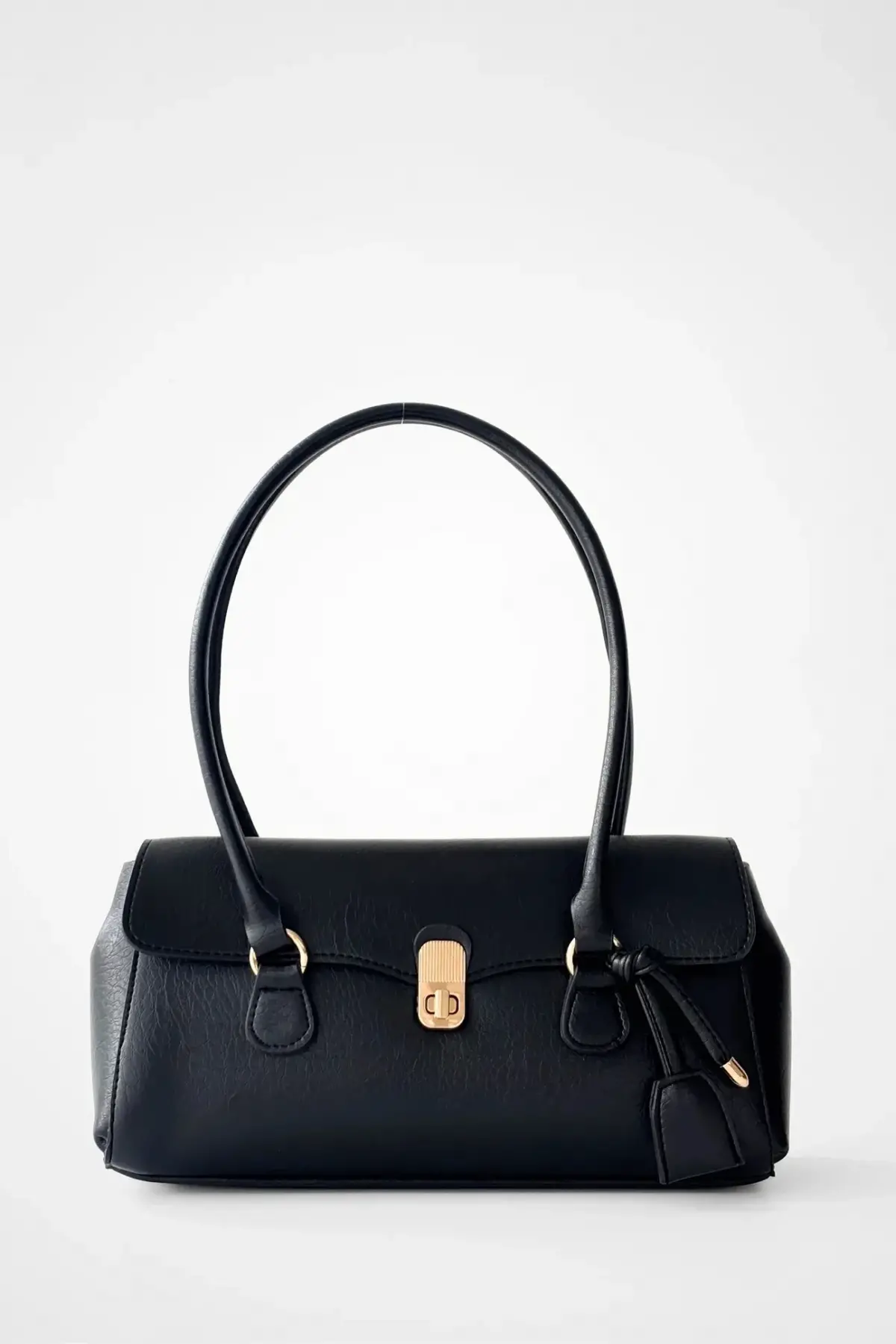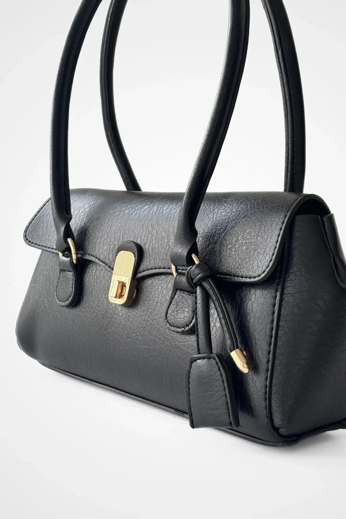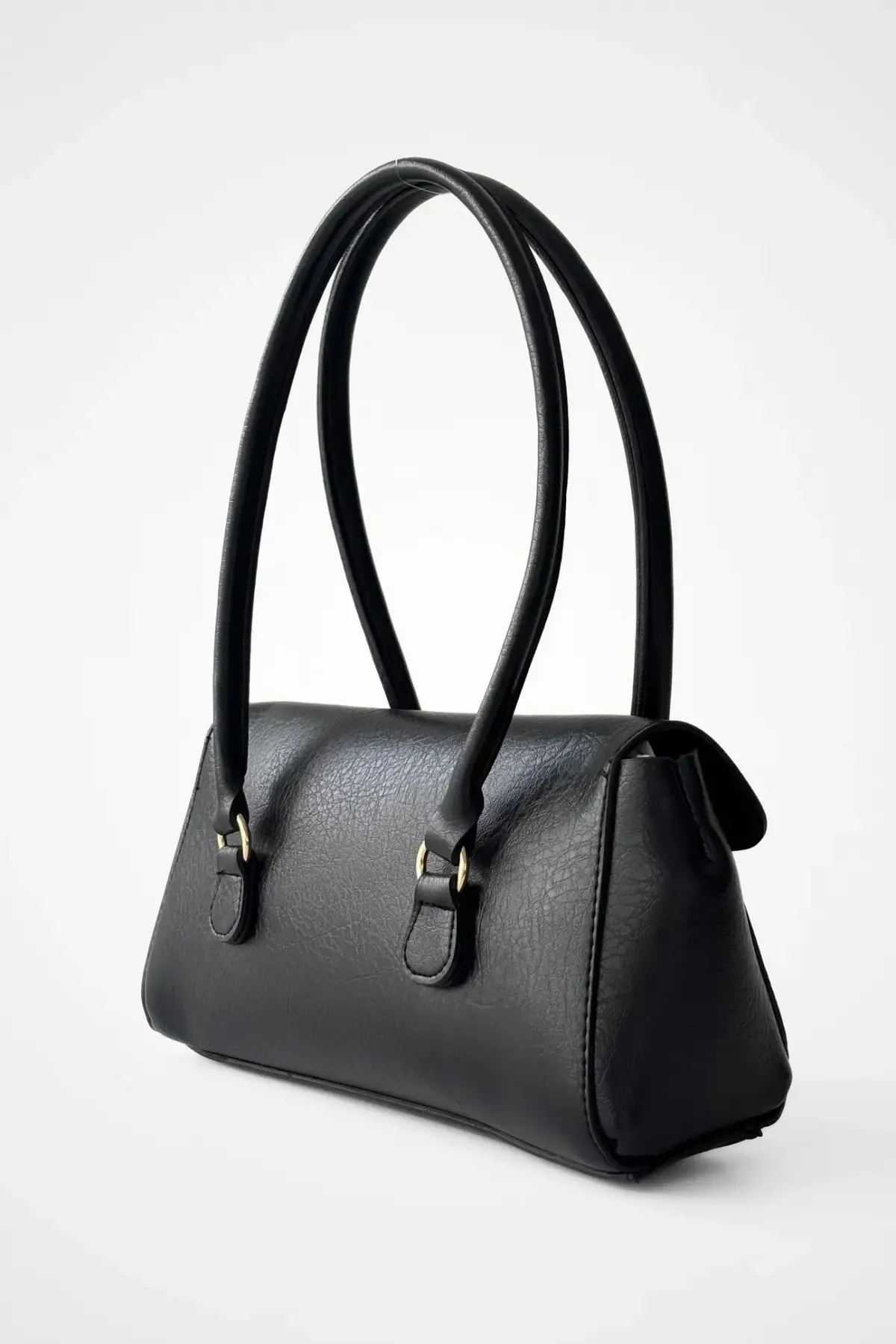 Valina Siyah Vegan Deri Gold Toka Detaylı Kadın El Ve Omuz Çantası