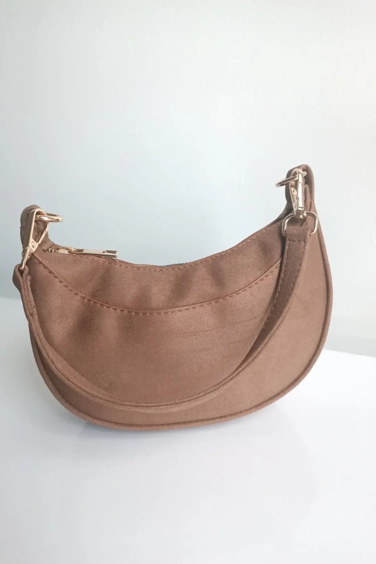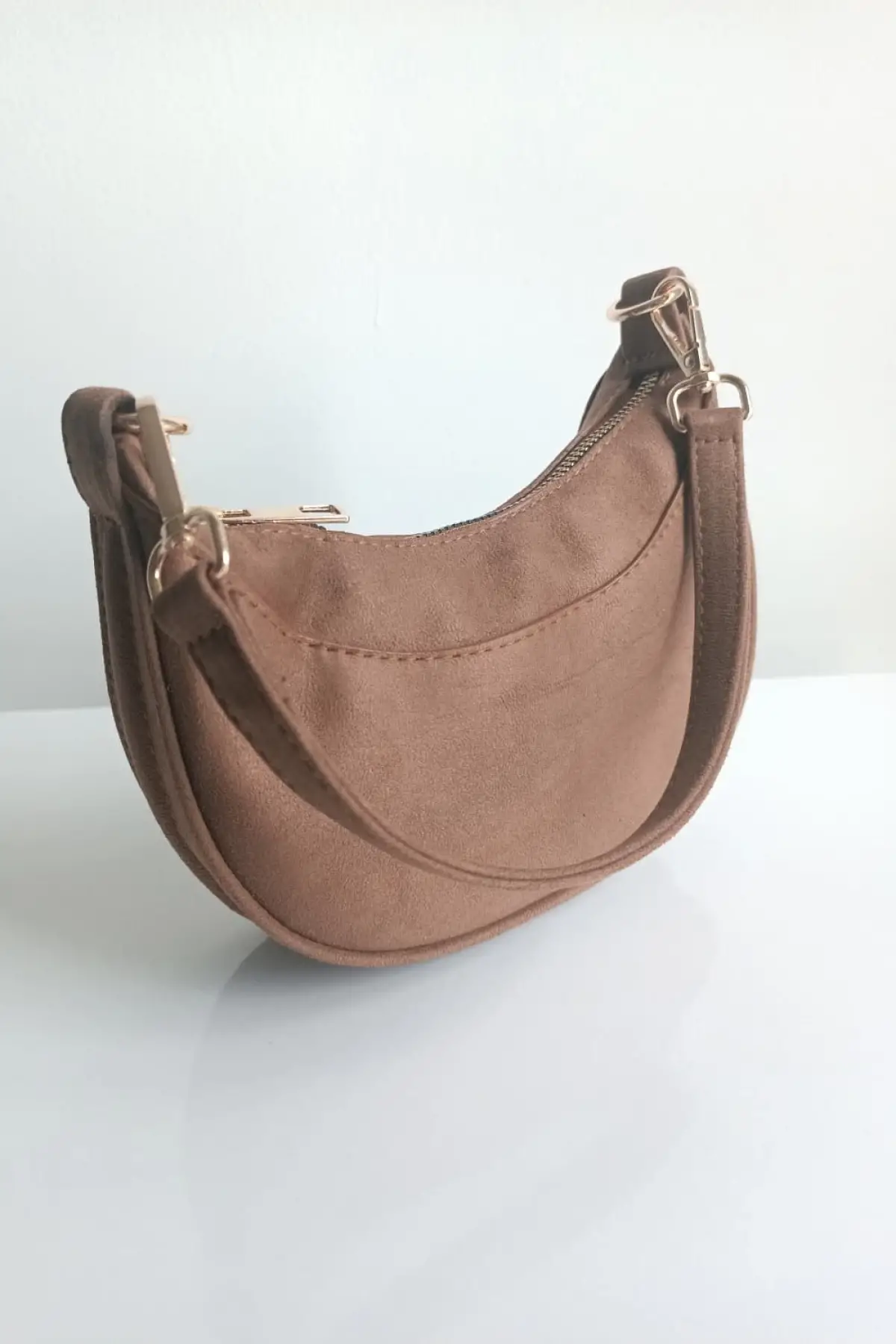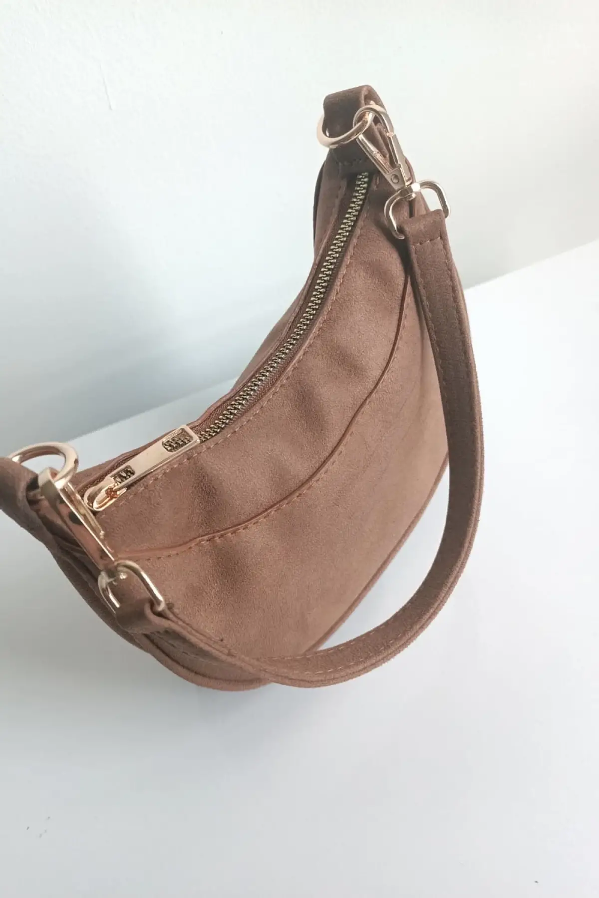 Vanya Taba Süet Mini Fermuar Kapamalı Kadın El Ve Omuz Çantası