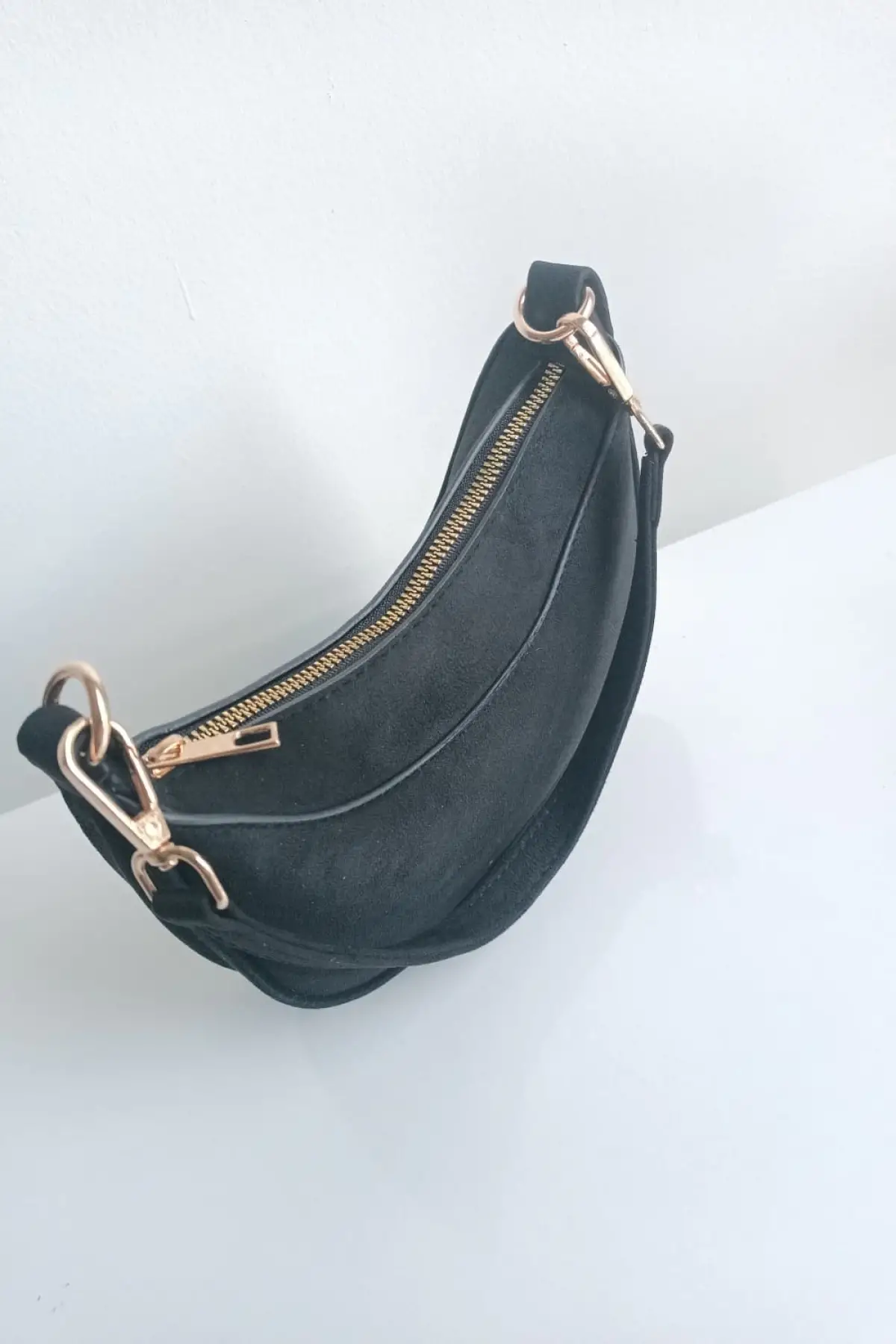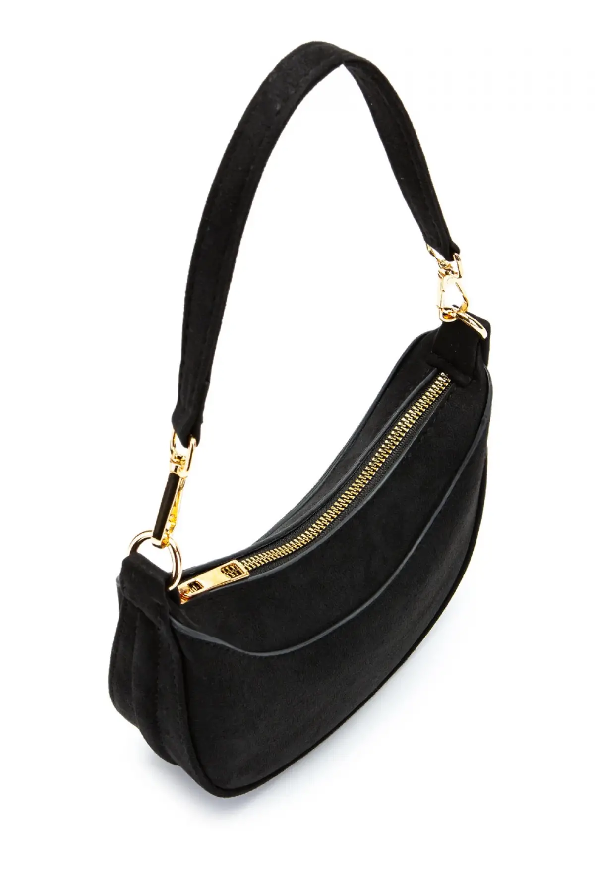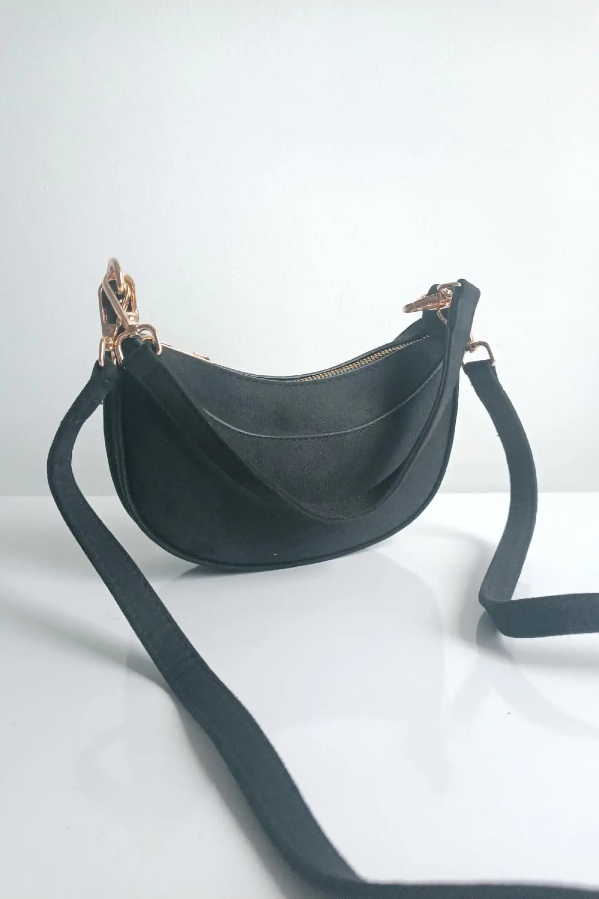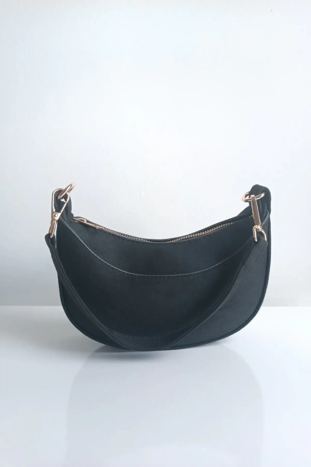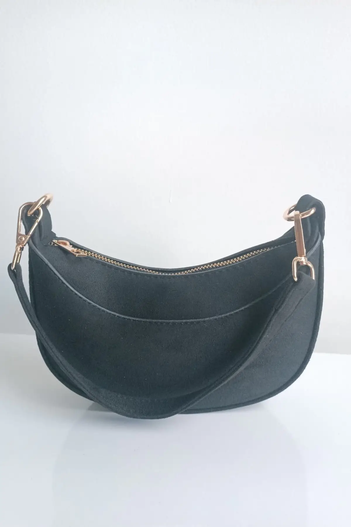 Vanya Siyah Süet Mini Fermuar Kapamalı Kadın El Ve Omuz Çantası