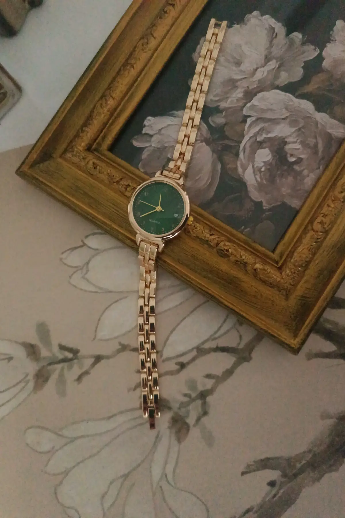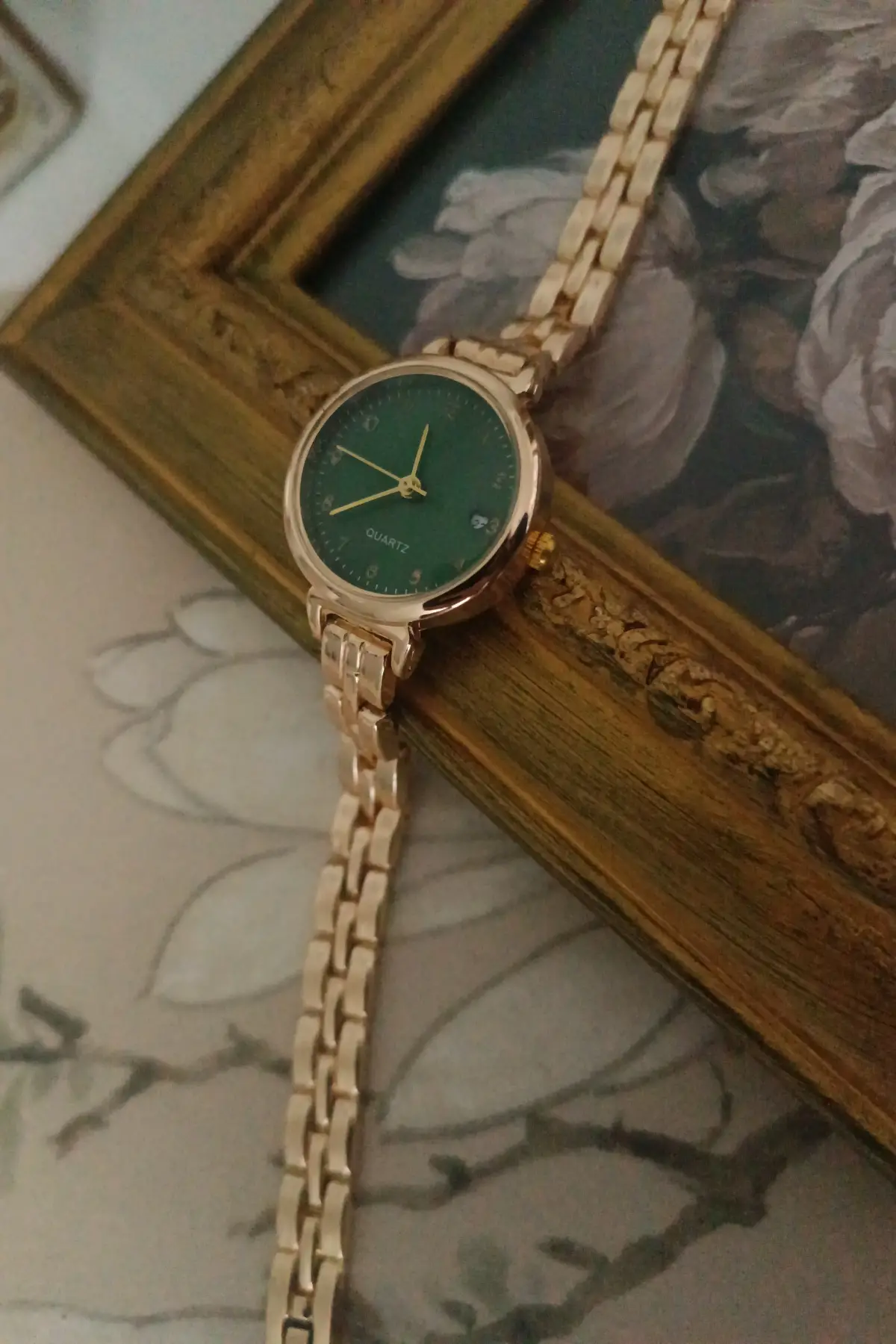 Bellora Kadın Gold Renk Metal Kordonlu Zümrüt Yeşil Kadranlı Vintage Kol Saati