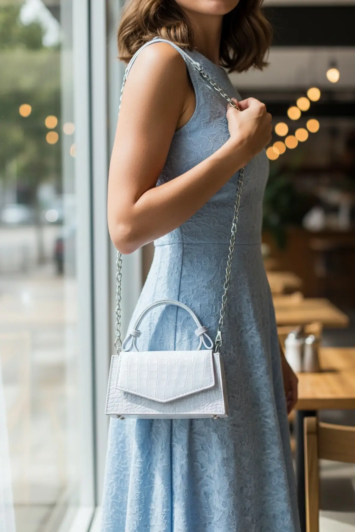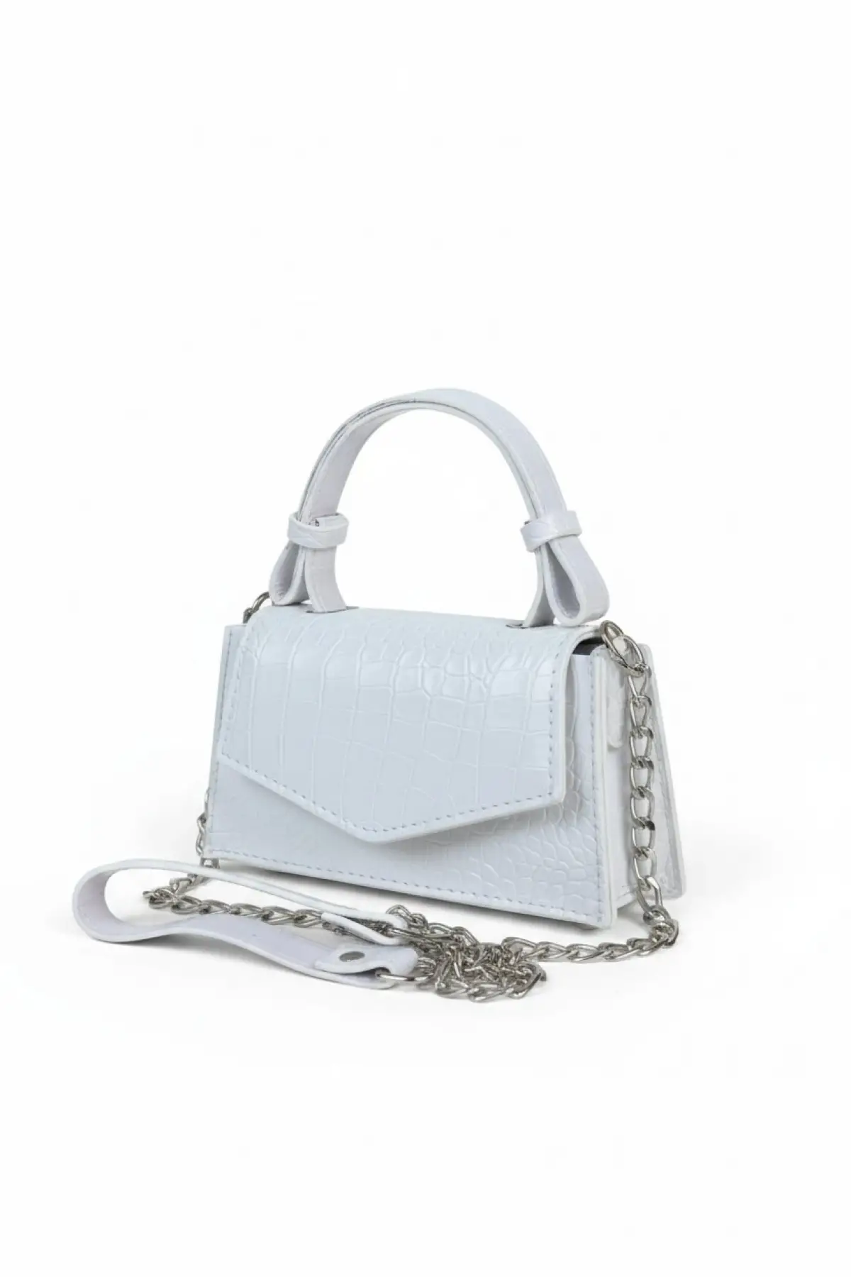 Zeus Beyaz Croco Zincir Askılı Kadın El Kol Ve Omuz Çantası