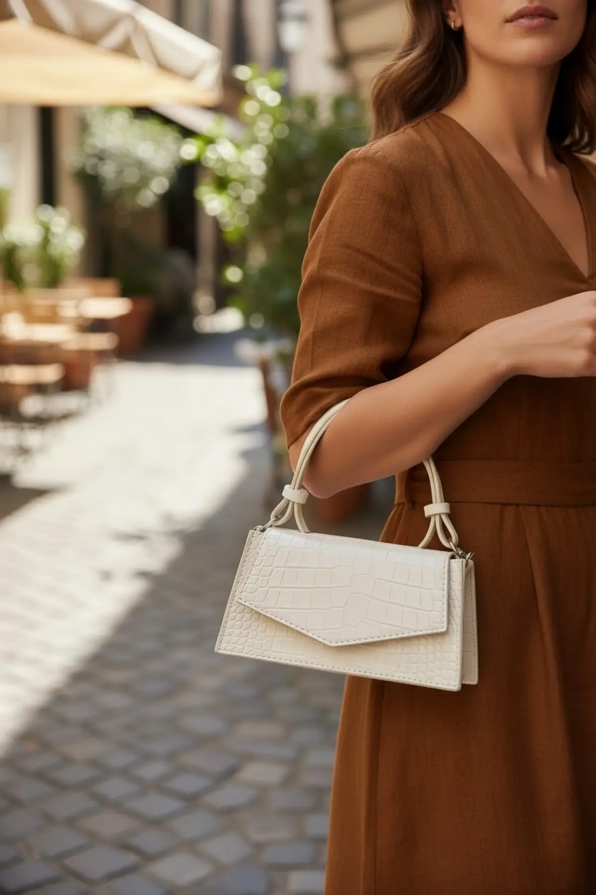 Tresse Acı Kahve Vegan Deri Keseli Kadın El Ve Omuz Çantası