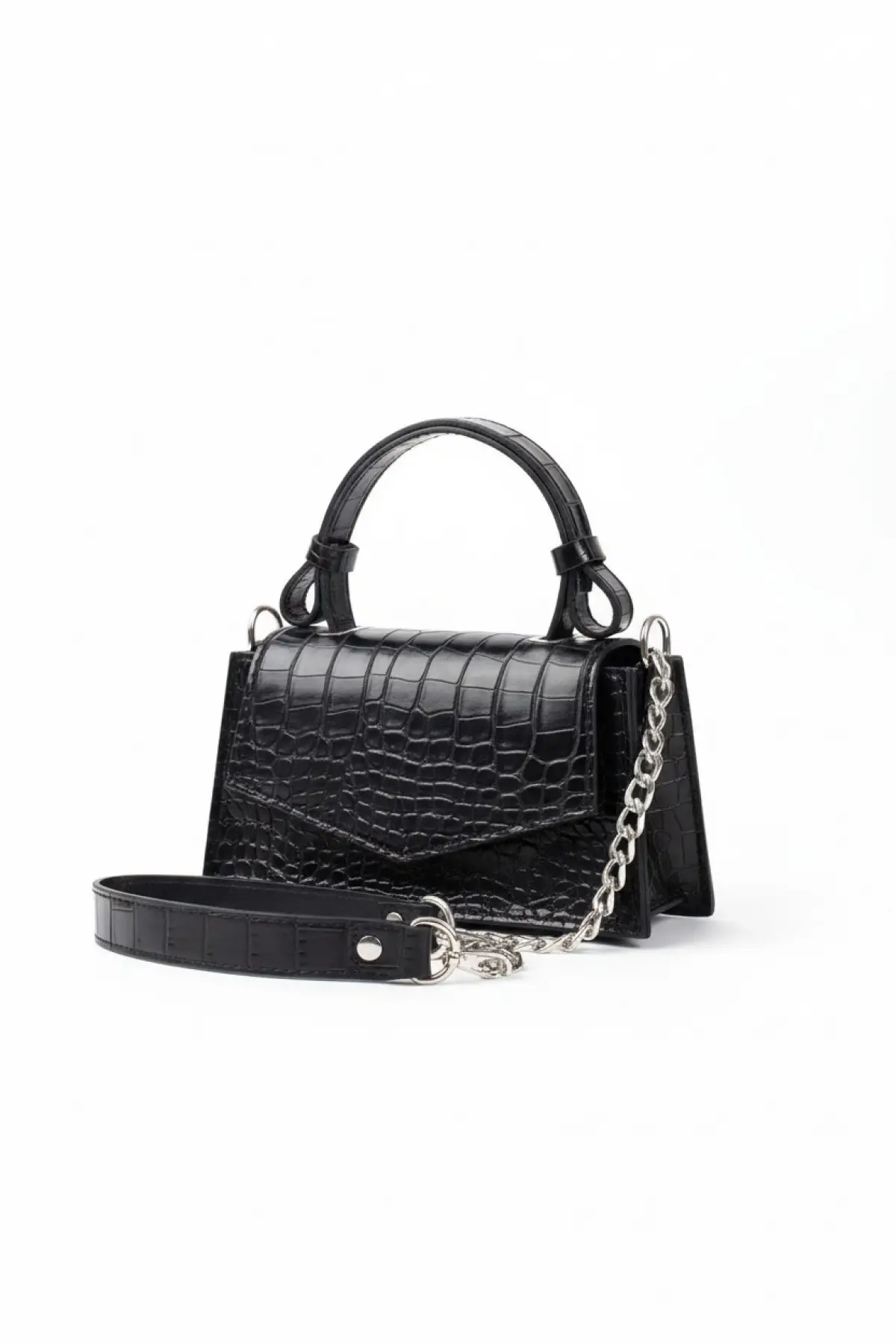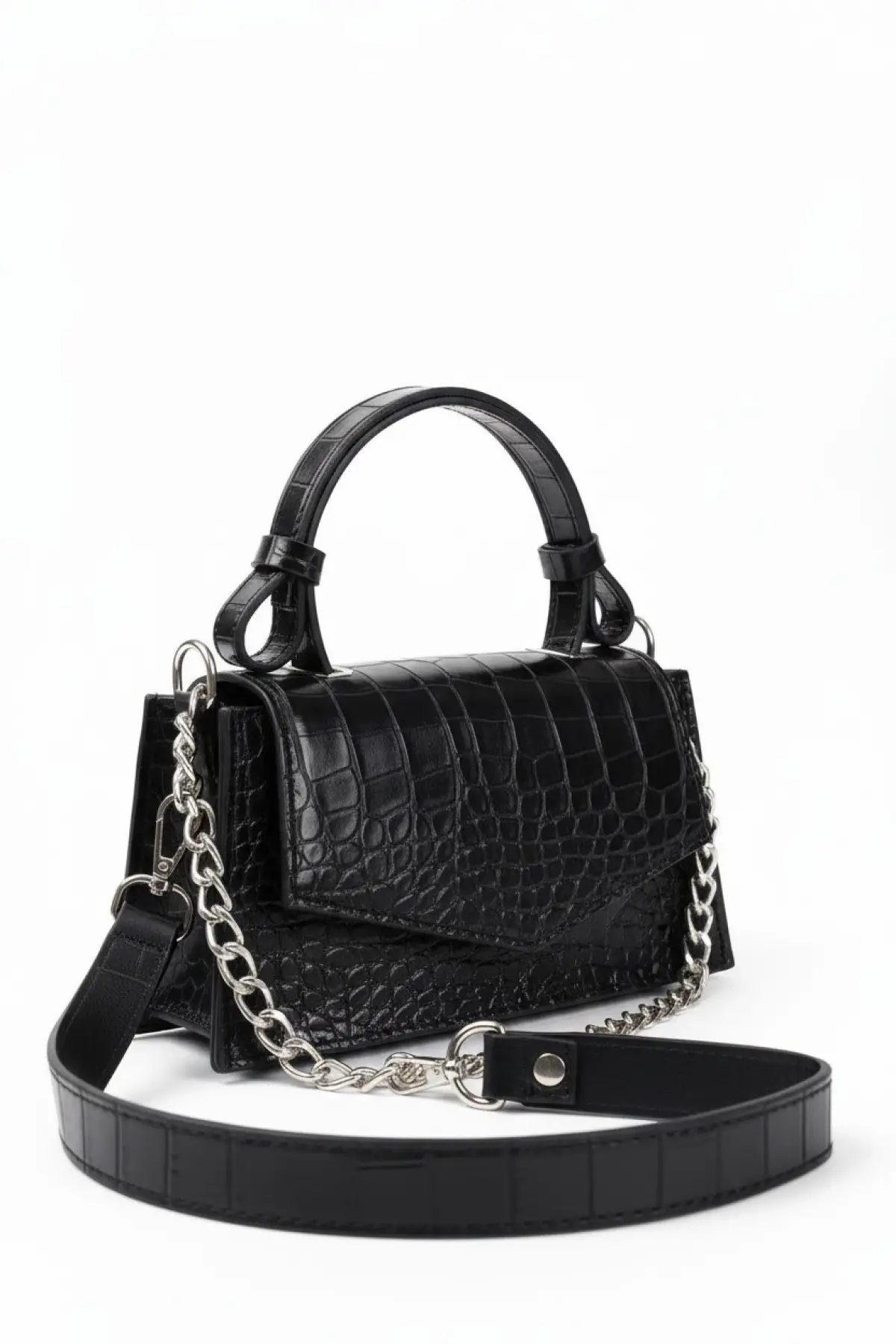 Zeus Siyah Croco Zincir Askılı Kadın El Kol Ve Omuz Çantası